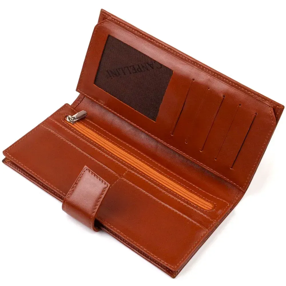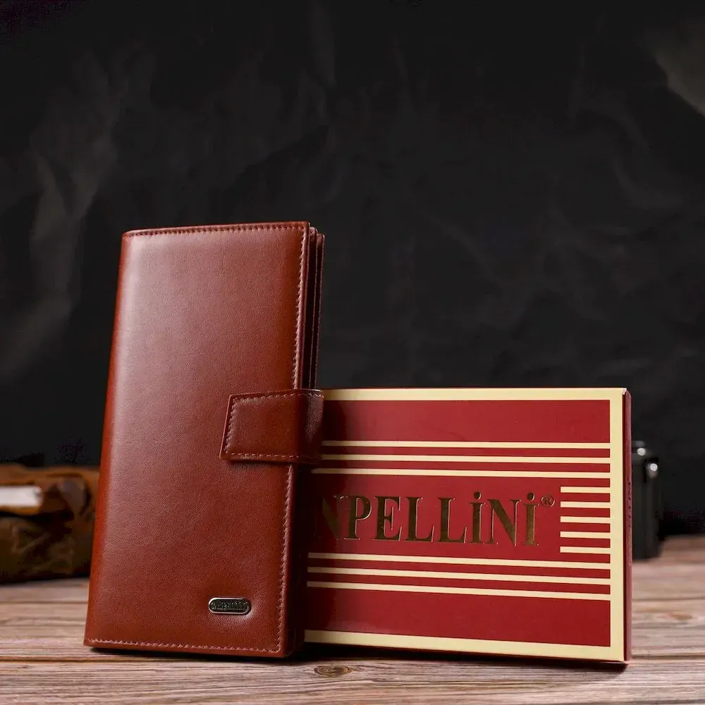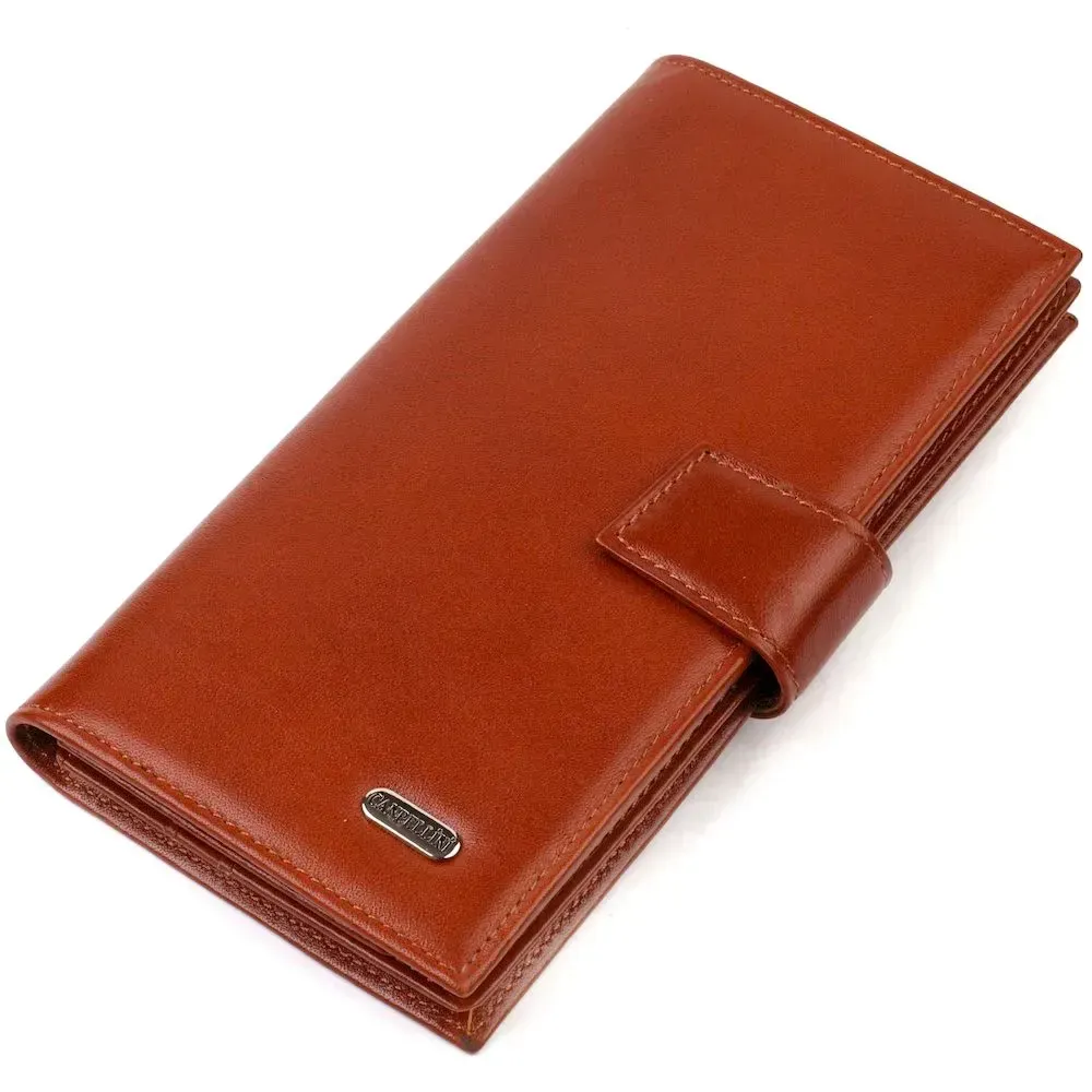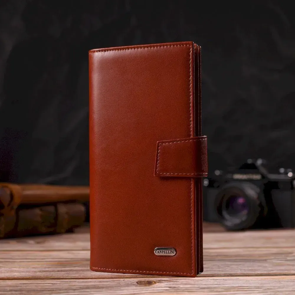 Практичное вертикальное мужское портмоне из натуральной гладкой кожи CANPELLINI 21721 Коричневое