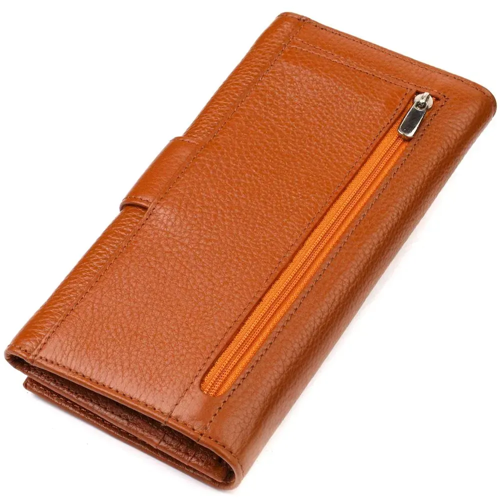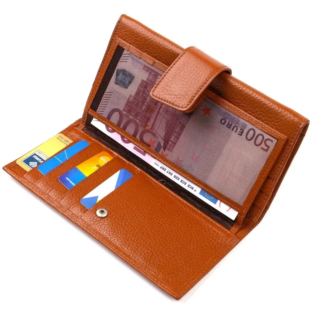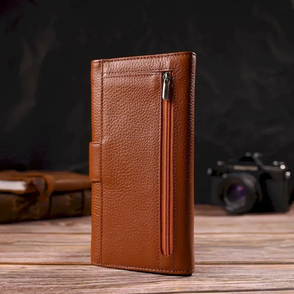 Отличный и удобный кошелек из натуральной кожи флотар. Аксессуар имеет одно основное отделение с тканевой перегородкой на молнии, восемнадцать карманов для карточек, карман под сеточкой для пропуска, два скрытых кармана и монетницу. Закрывается аксессуар в два сложения хлястиком на кнопку. На лицевой стороне, в правом нижнем углу металлический логотип компании производителя. Приобретая кожаный аксессуар этой фирмы, себе или на подарок, будьте уверены, что он прослужит Вам не один год.