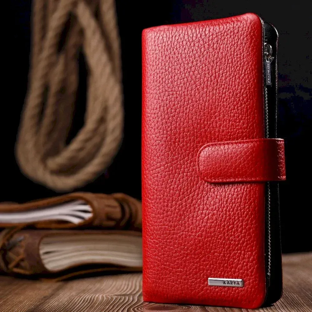 Практичное женское портмоне из натуральной кожи KARYA 20997 Красный