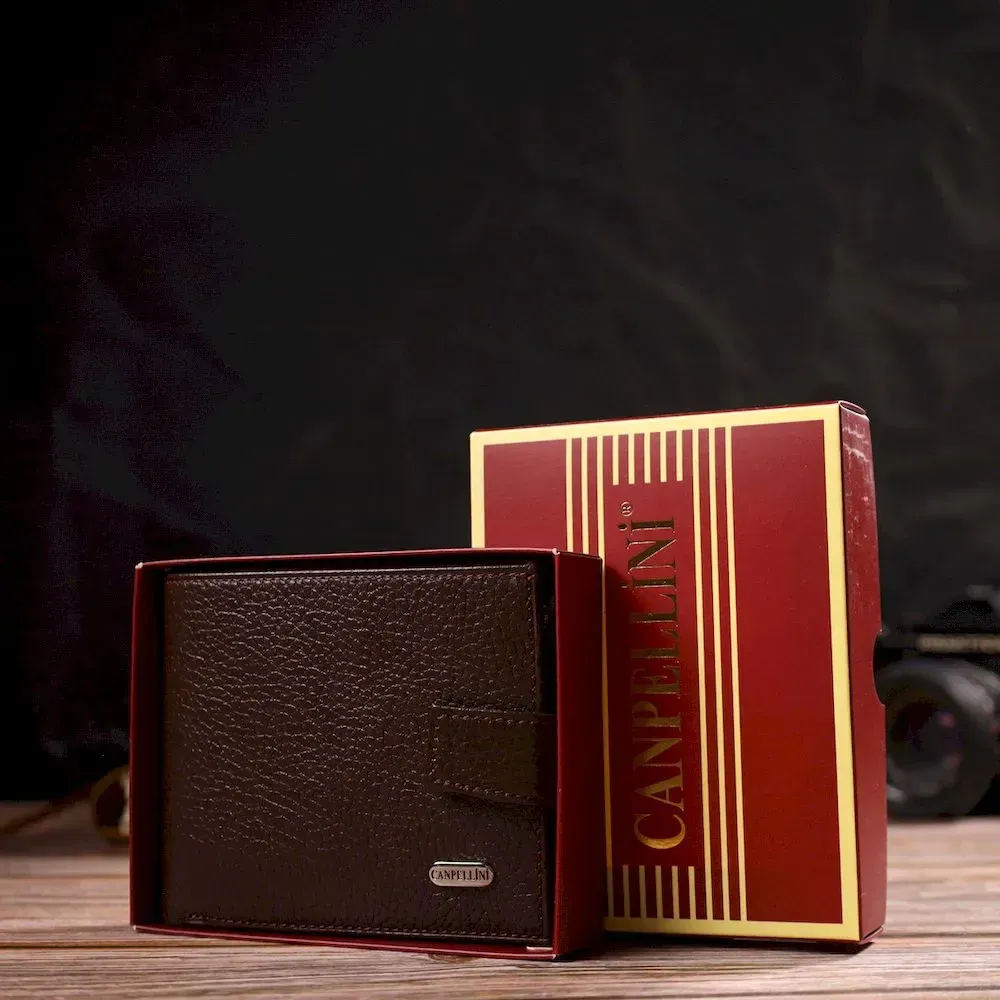 Практичный горизонтальный кошелек для мужчин из натуральной кожи флотар CANPELLINI 21886 Коричневый