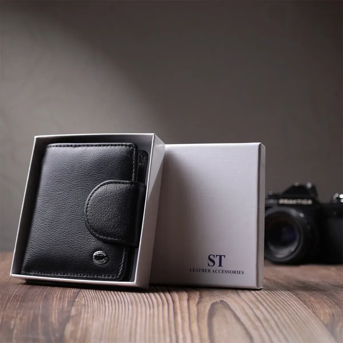 Практичный кошелек для женщин с карманом для монет из натуральной кожи ST Leather 22725 Черный