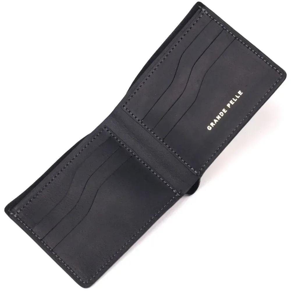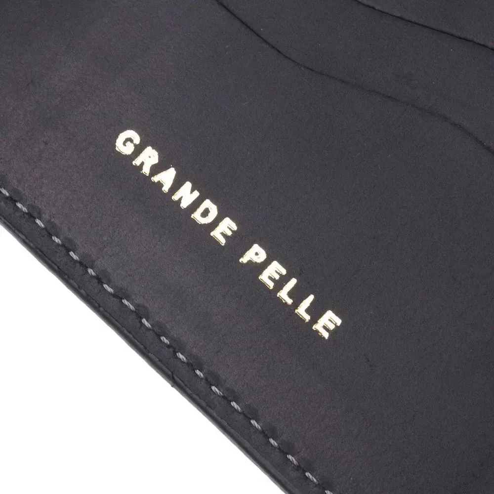 Практичный кожаный кошелек в два сложения Сердце GRANDE PELLE 16753 Черный