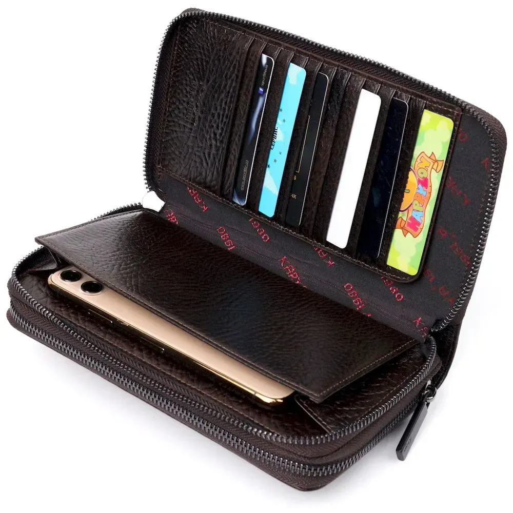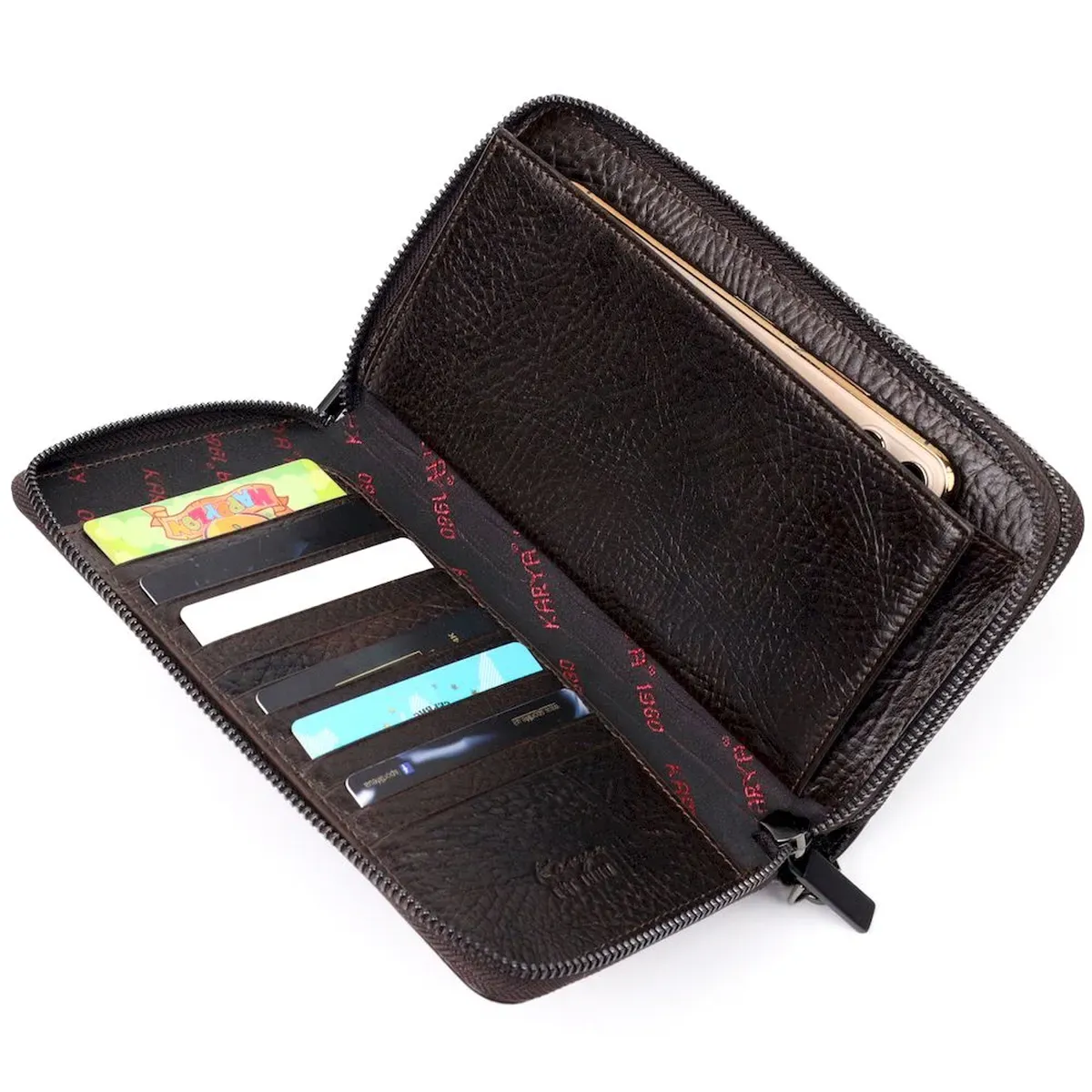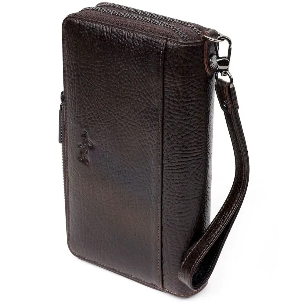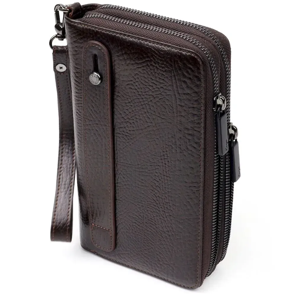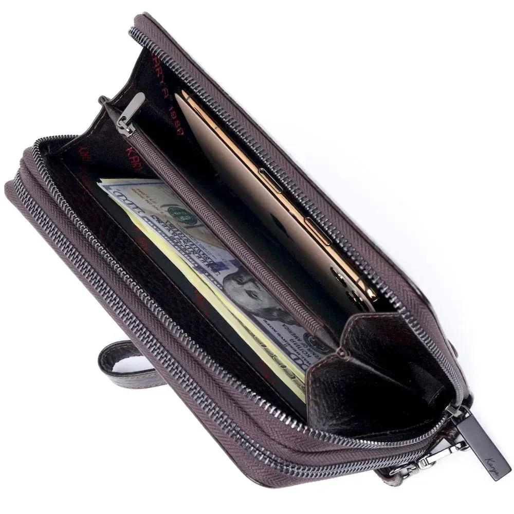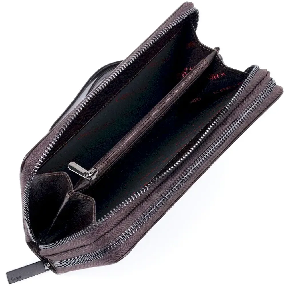 Практичный мужской клатч на два отделения KARYA 20853 кожаный Коричневый