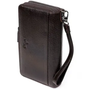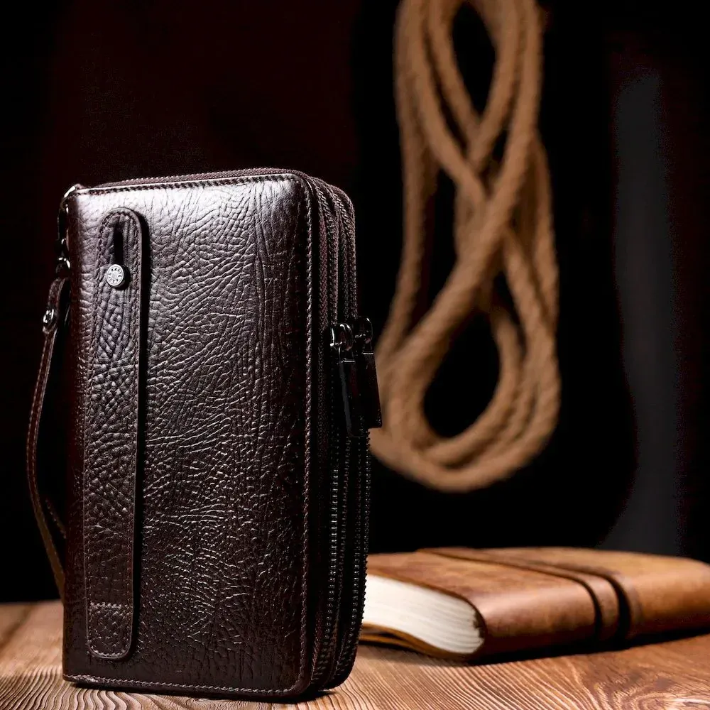 Оригинальный мужской клатч из натуральной зернистой кожи с использованием добротного текстиля (внутренняя подкладка). Носится с помощью ремешка на запястье или просто в руке. Используется качественная фурнитура цвета темного серебра.