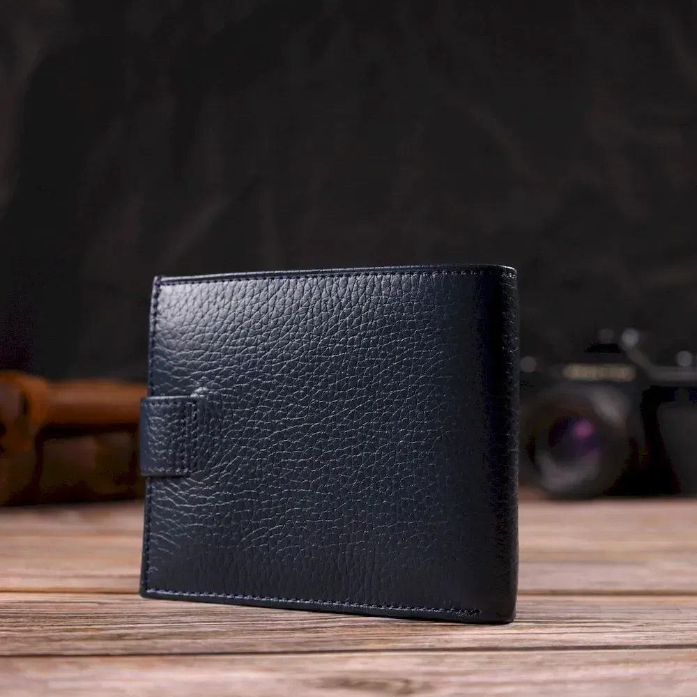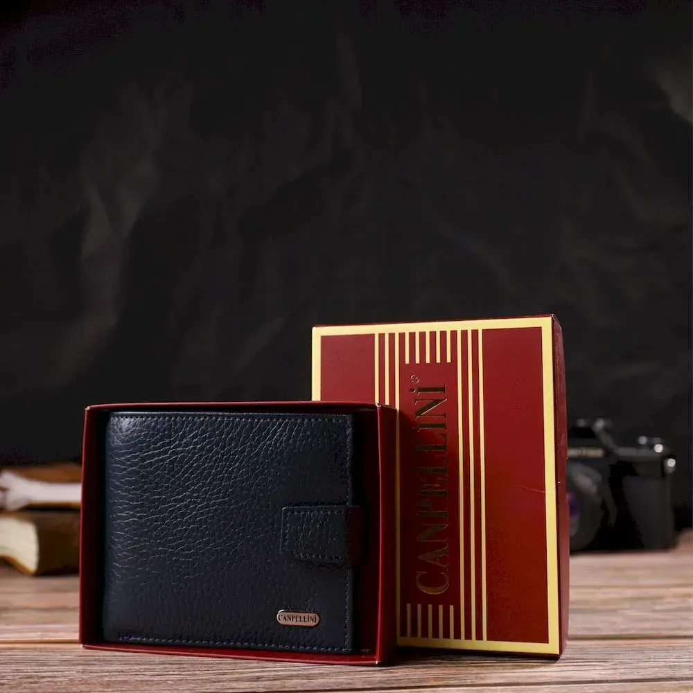 Практичный мужской кошелек из натуральной зернистой кожи CANPELLINI 21879 Синий