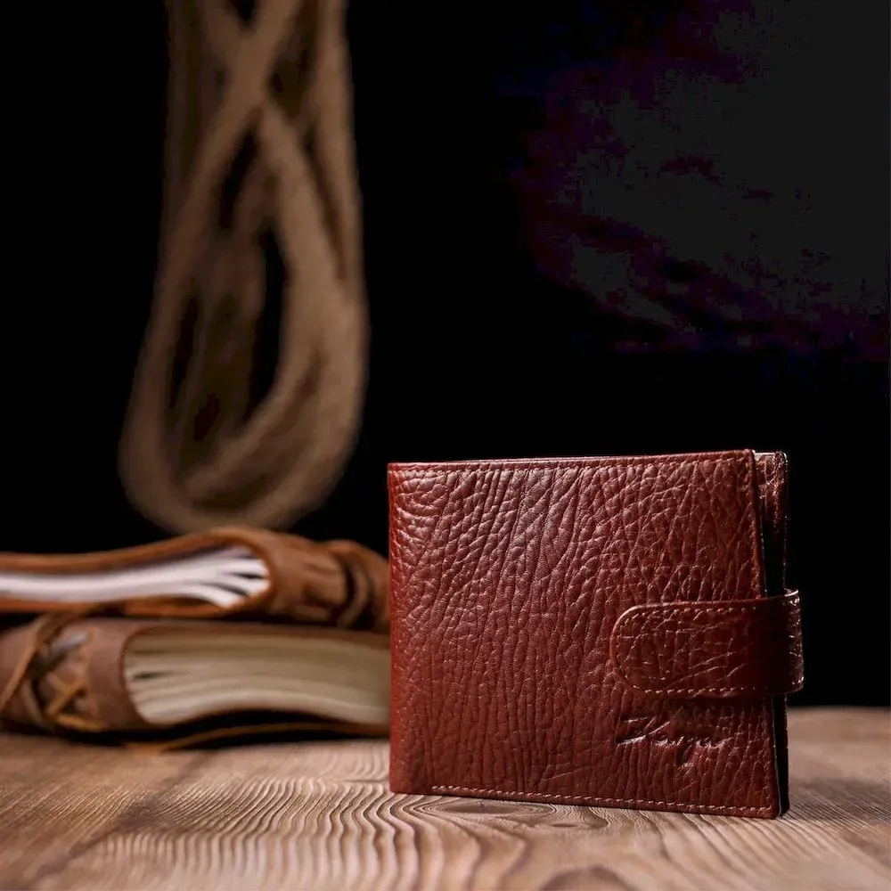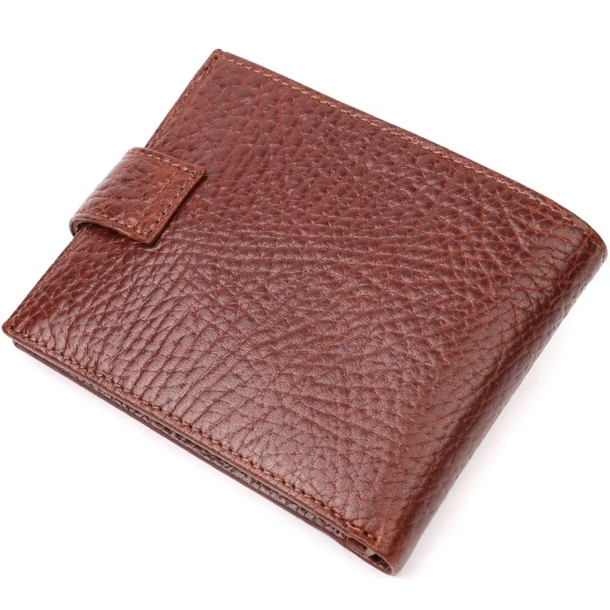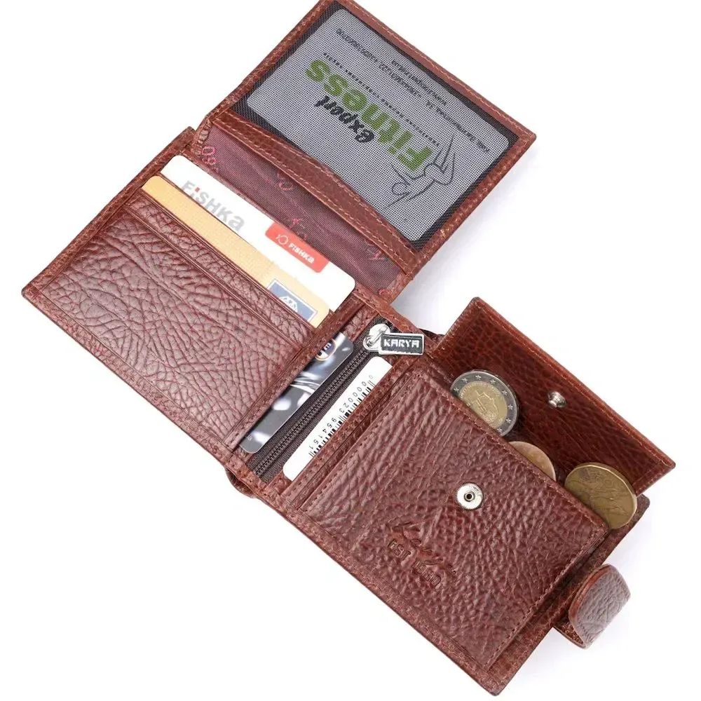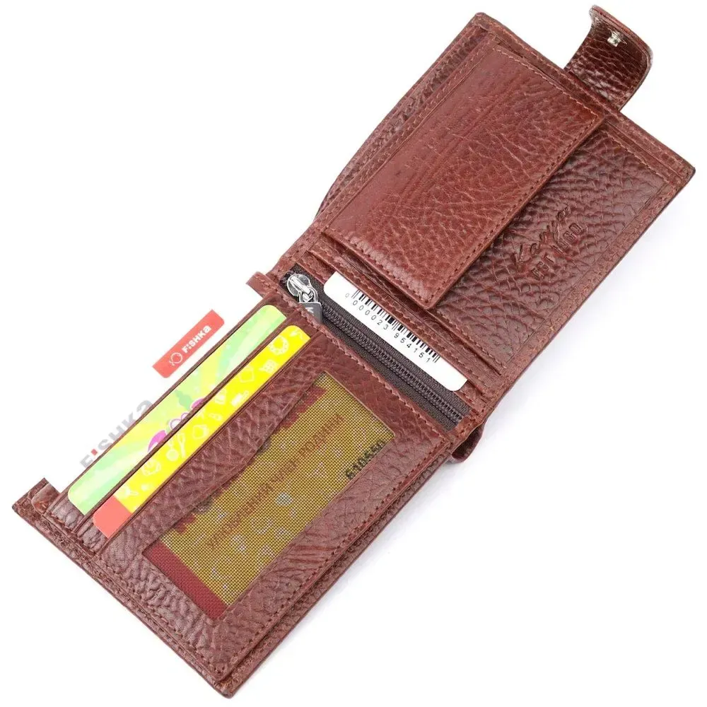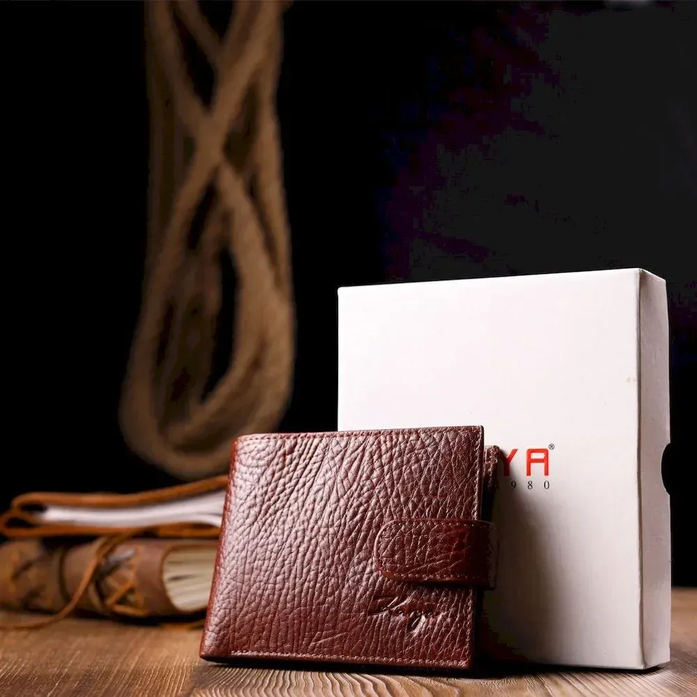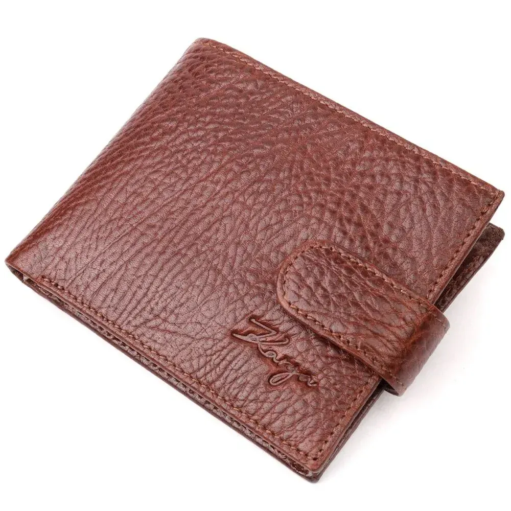 Практичный мужской кошелек с хлястиком из натуральной кожи KARYA 21075 Светло-коричневый