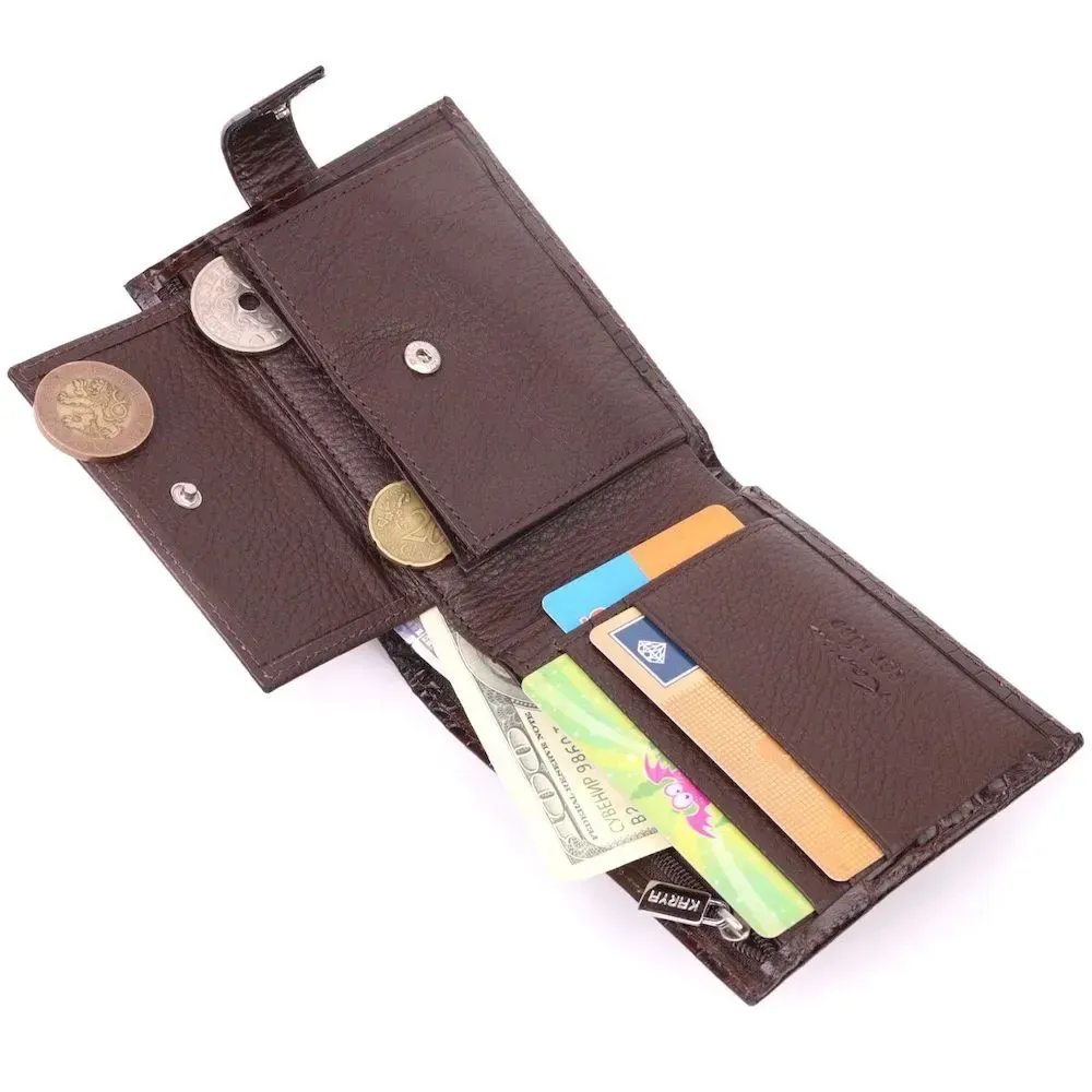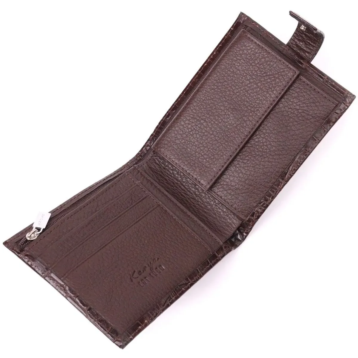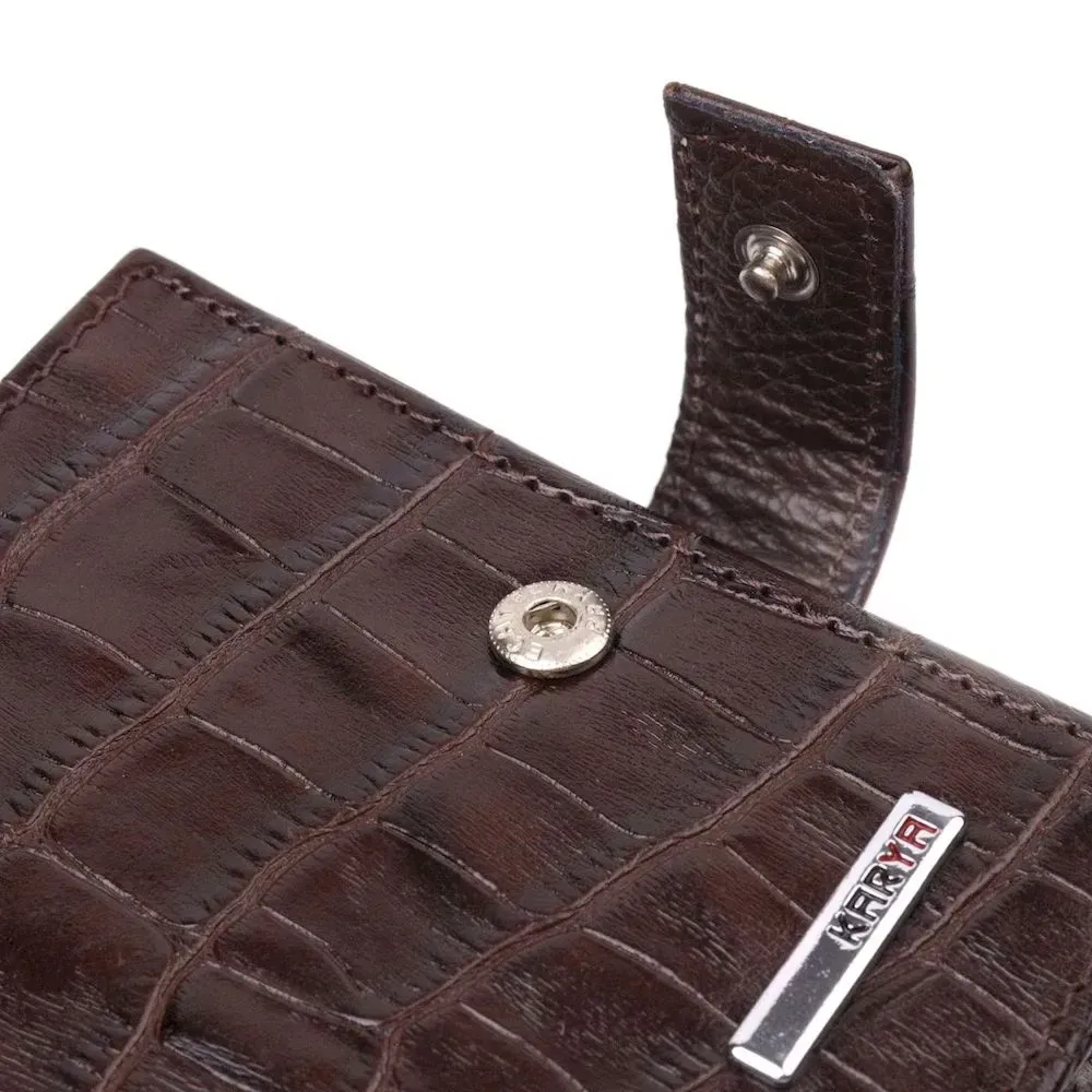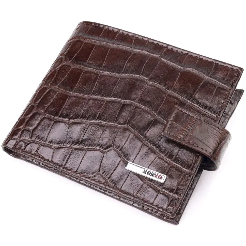 Практичный мужской кожаный кошелек с тиснением под крокодила KARYA 21368 Коричневый