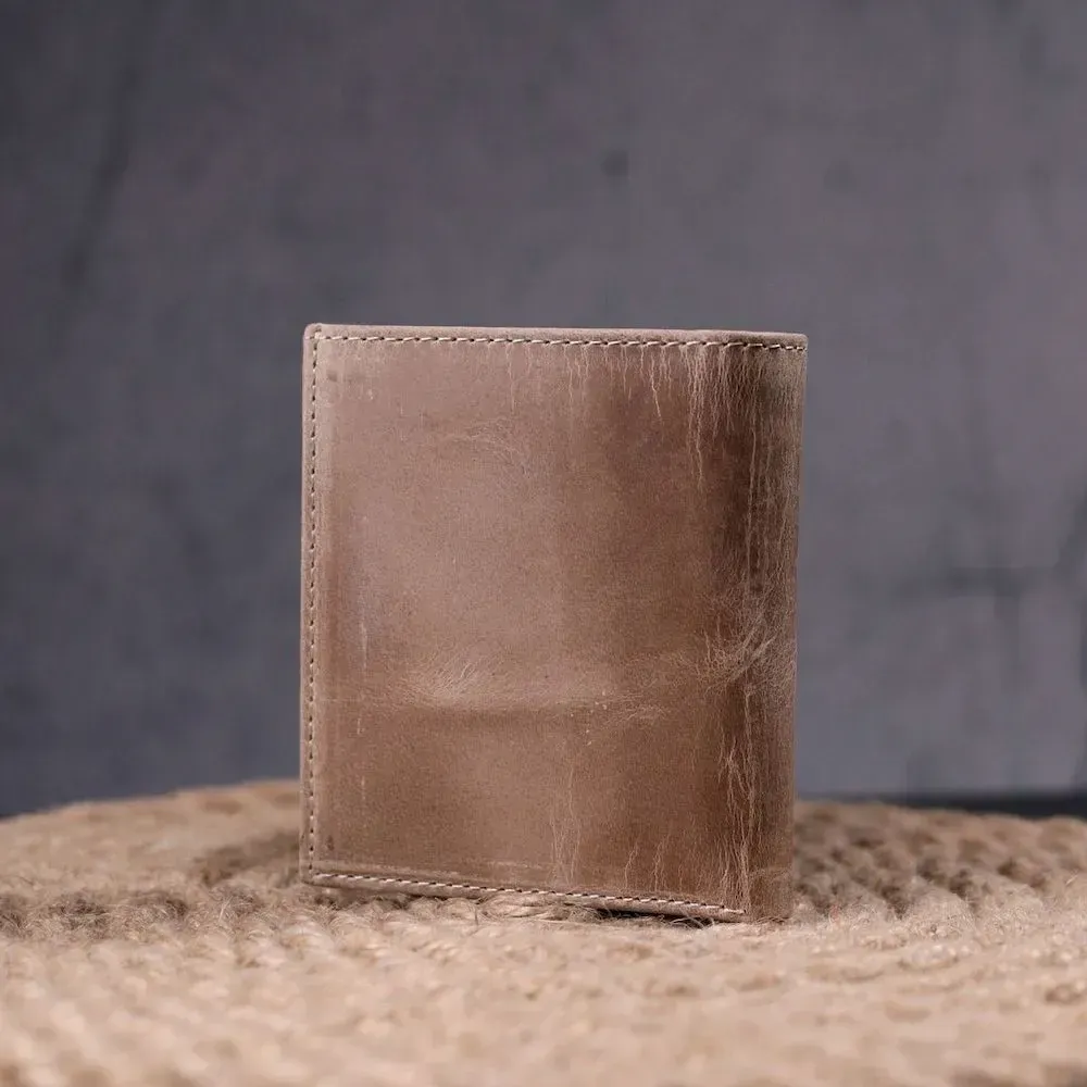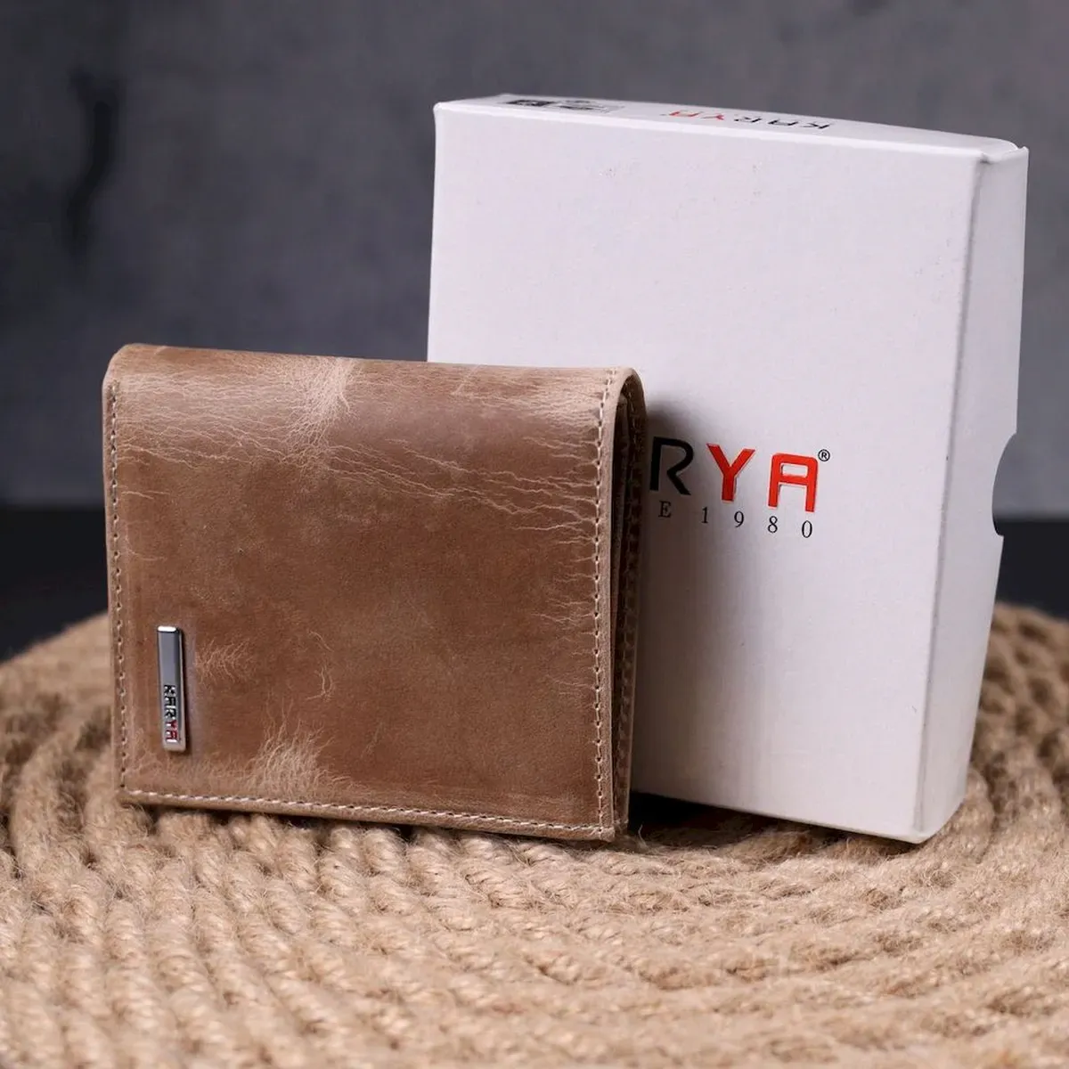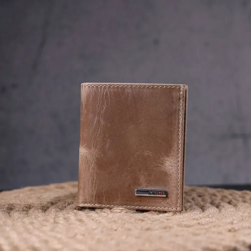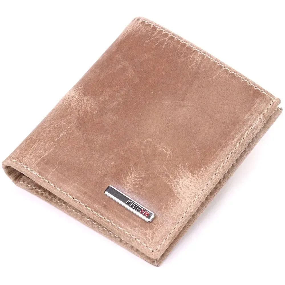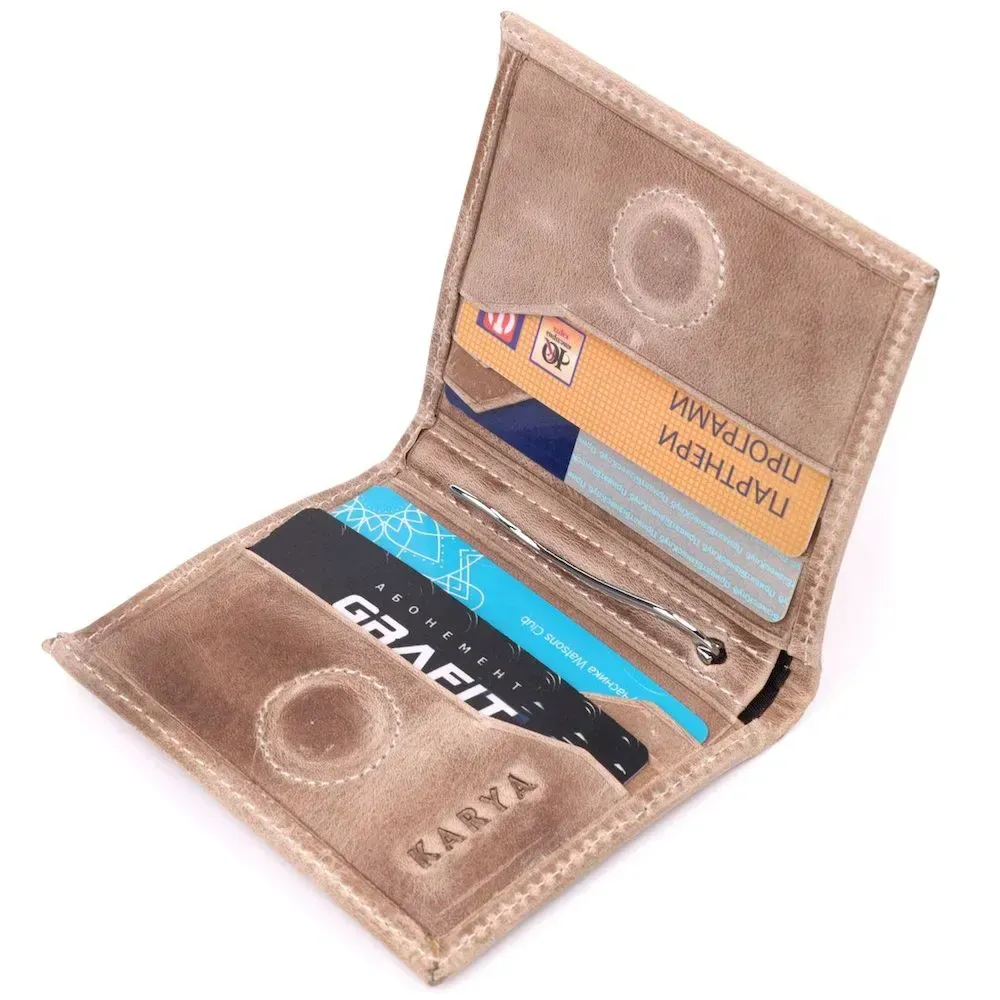 Практичный мужской зажим из добротной винтажной кожи KARYA 21356 Бежевый