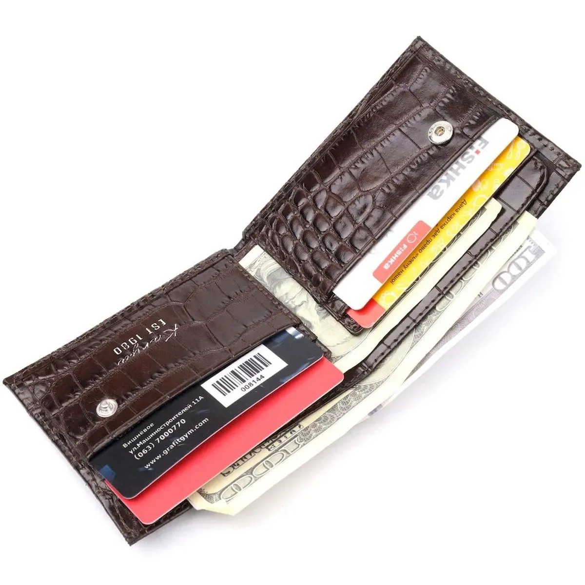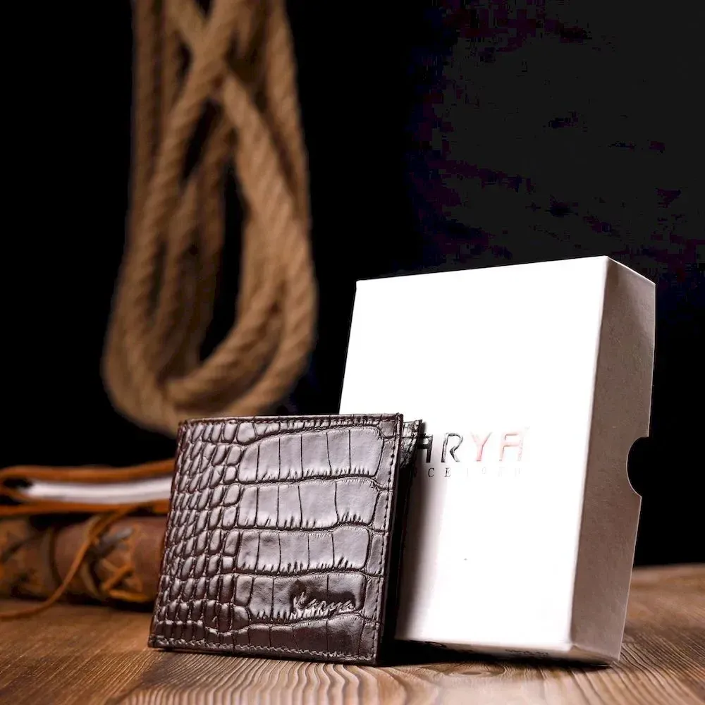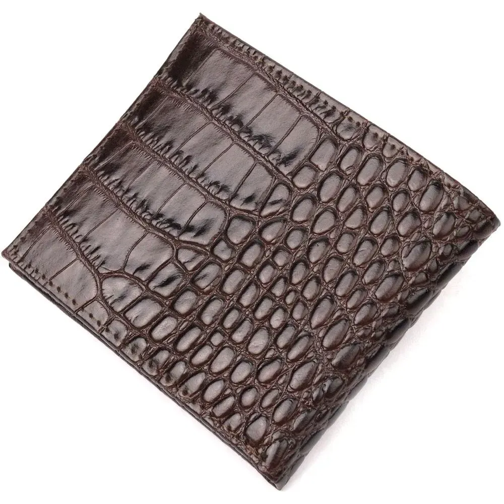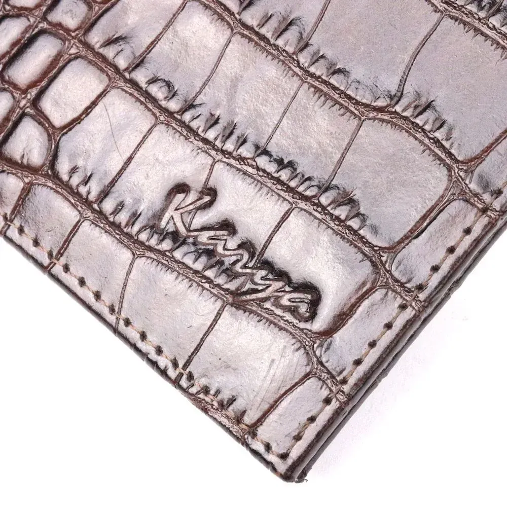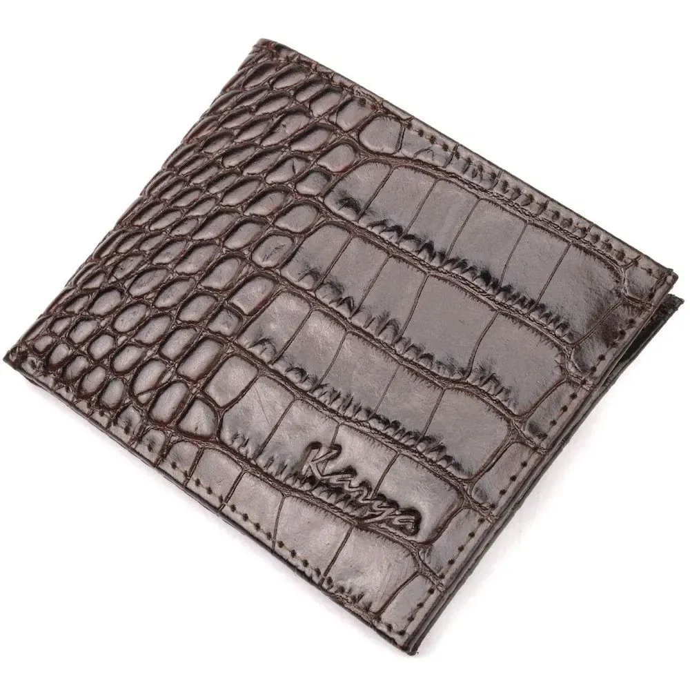 Практичный мужской зажим из фактурной кожи под рептилию KARYA 21050 Коричневый