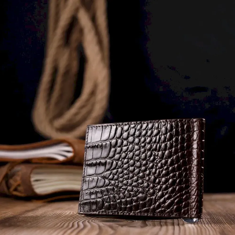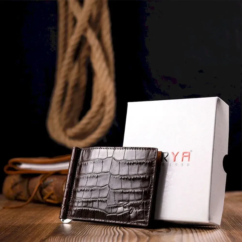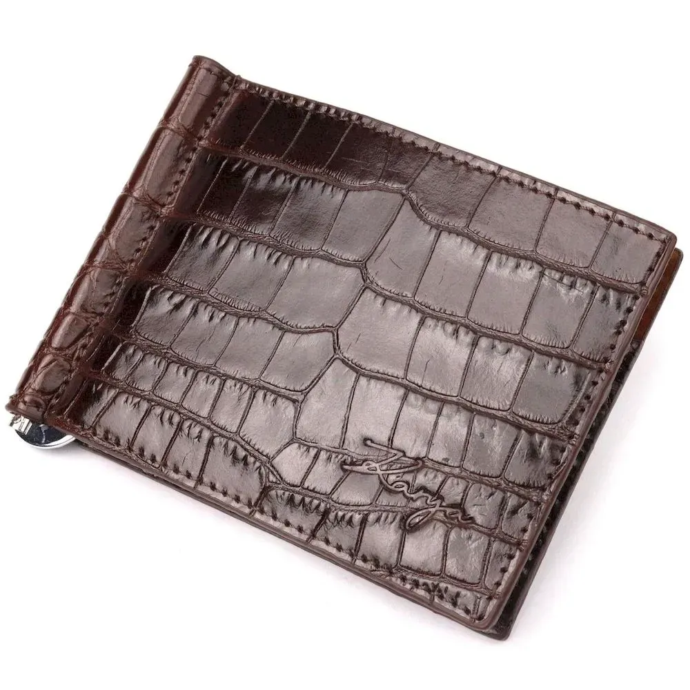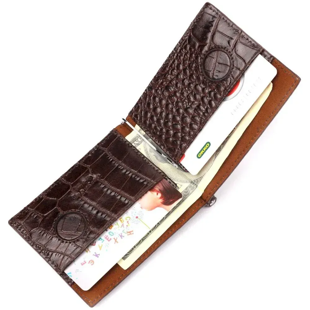 Практичный мужской зажим из фактурной кожи под рептилию KARYA 21055 Коричневый