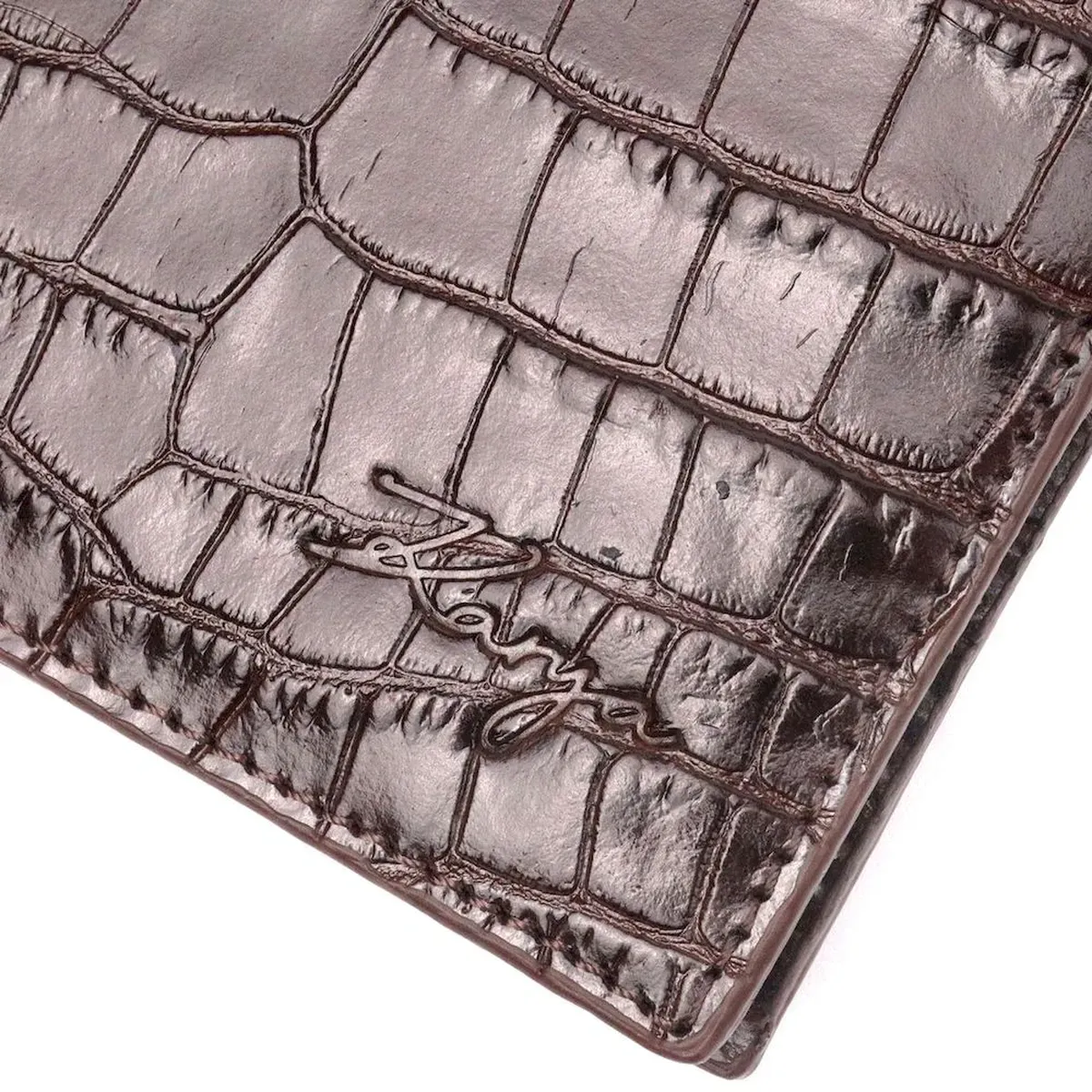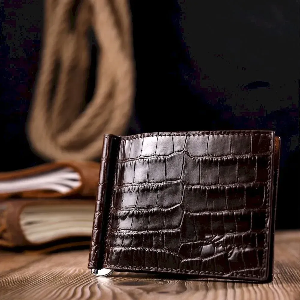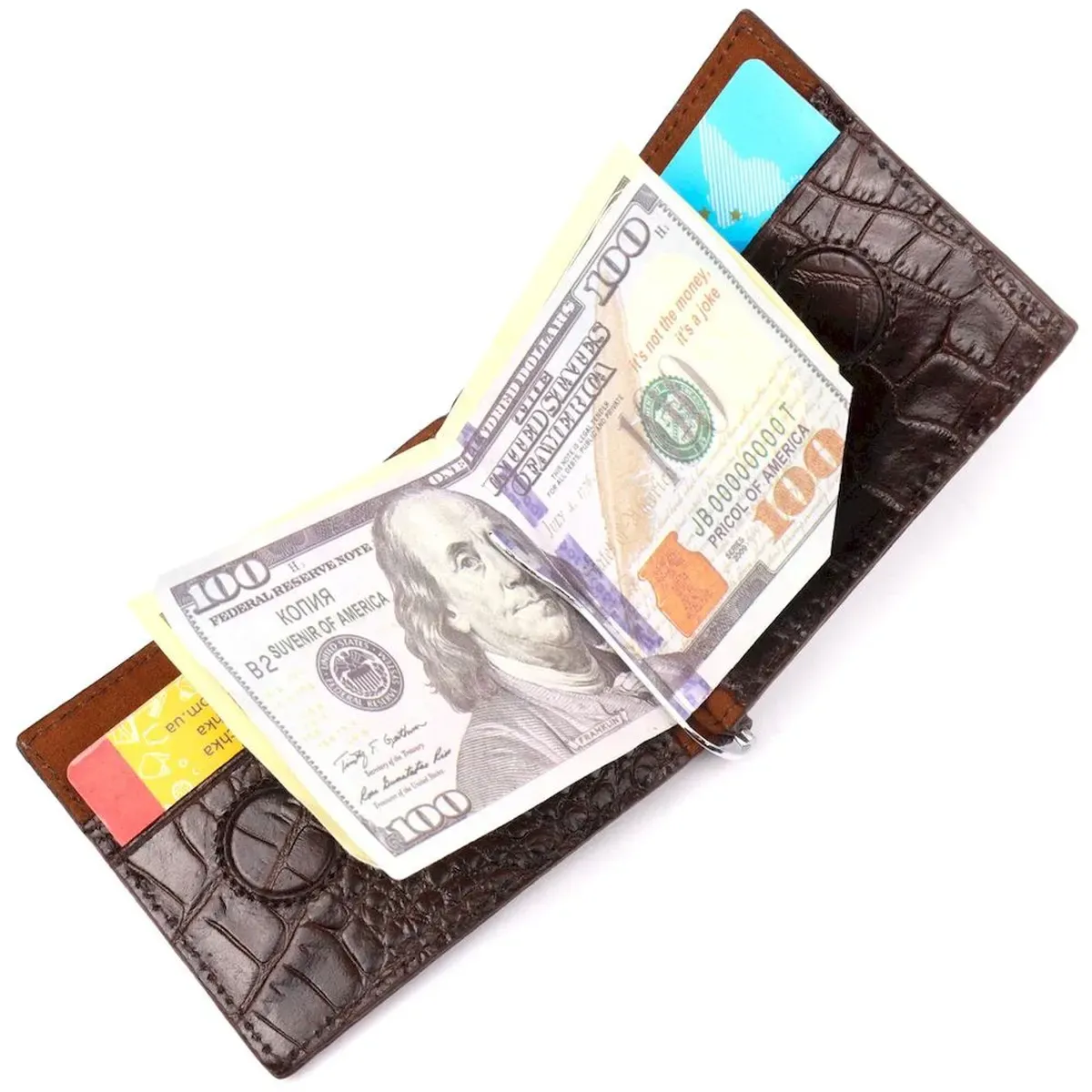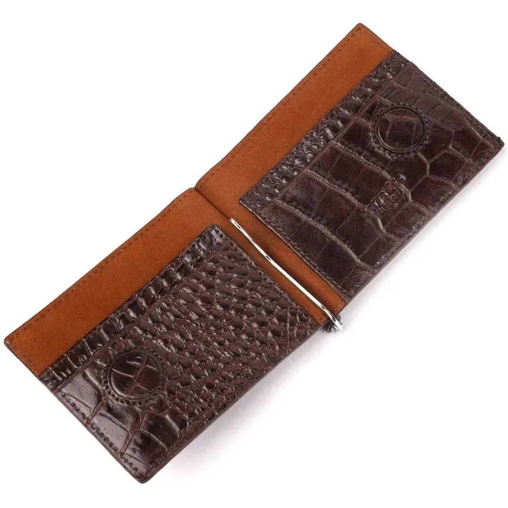 Практичный мужской зажим из фактурной кожи под рептилию KARYA 21055 Коричневый