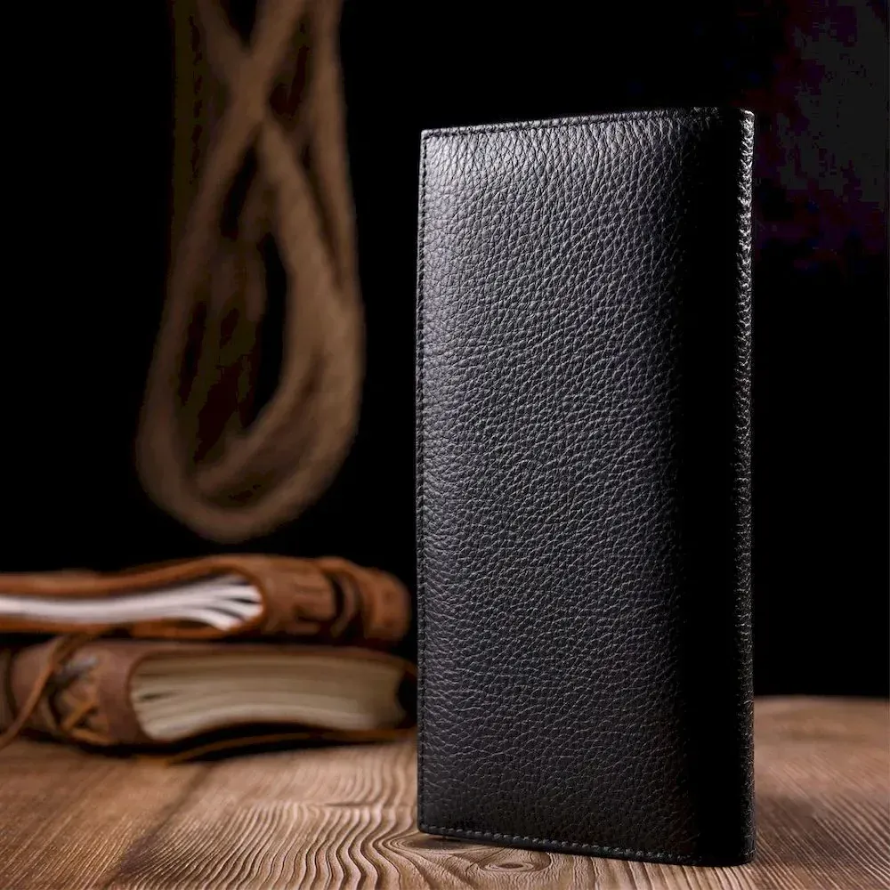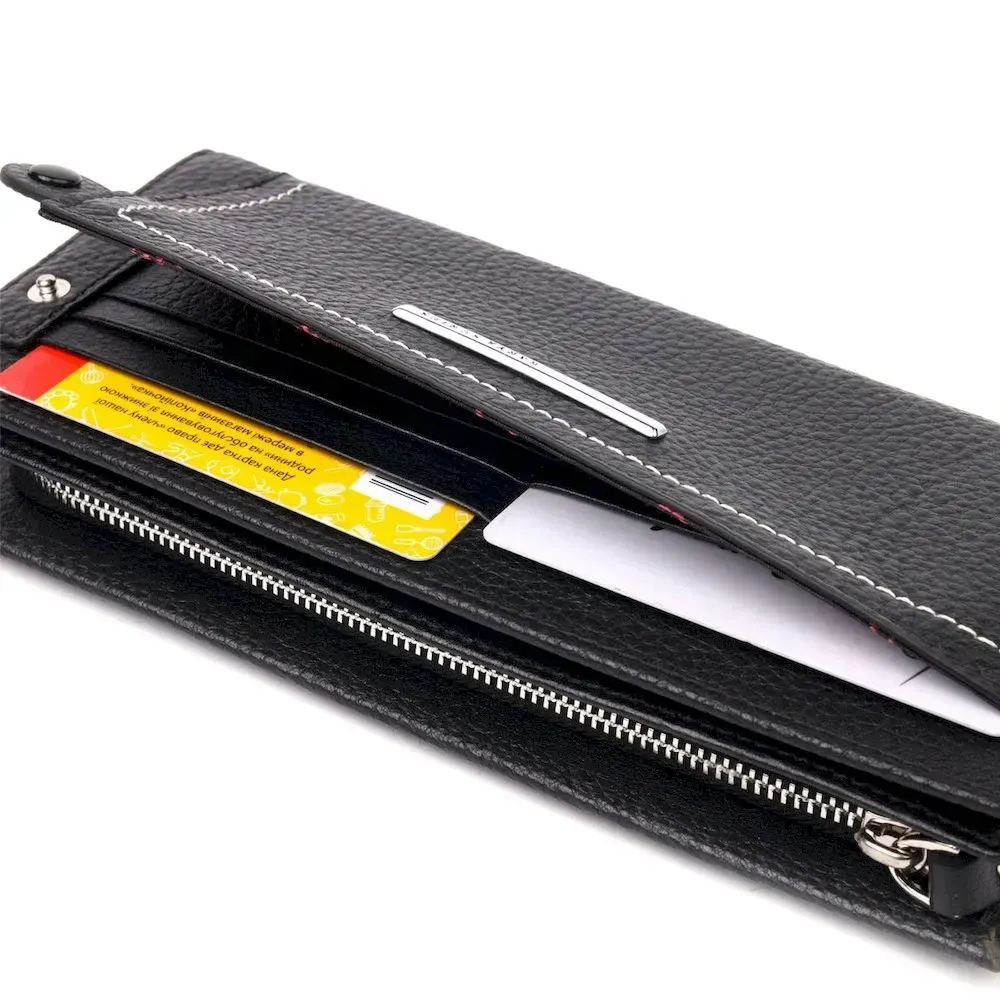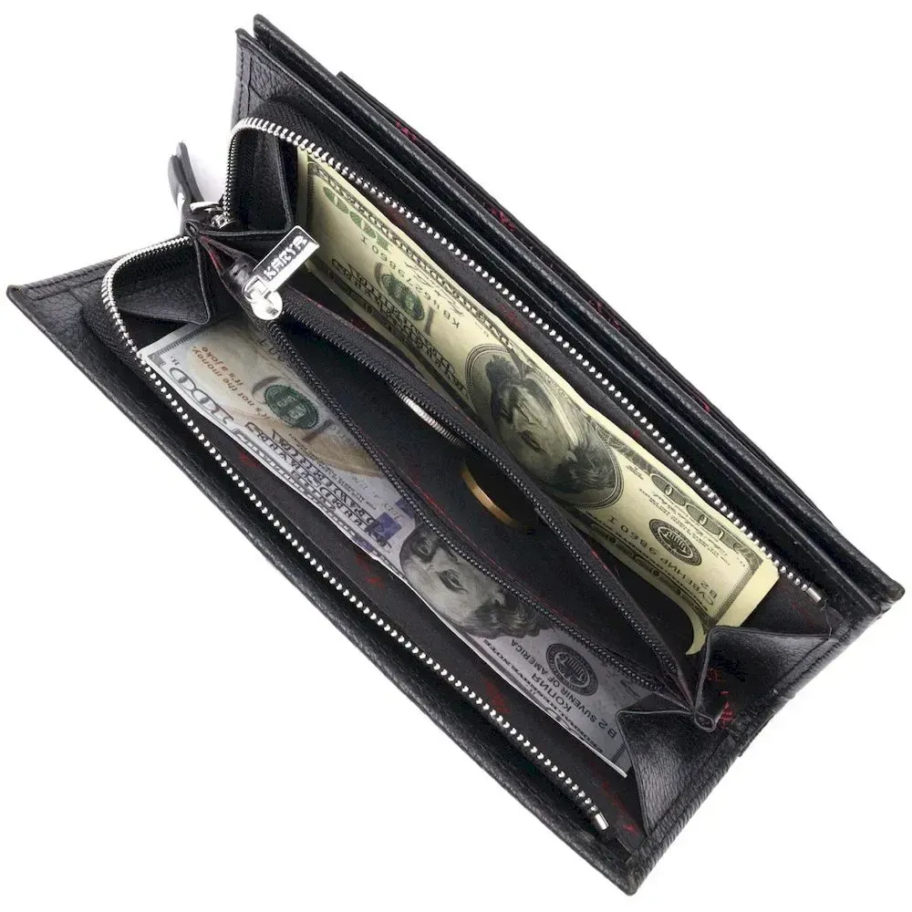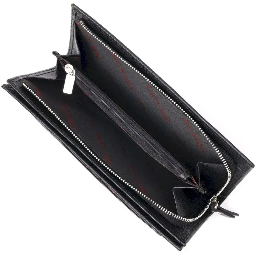 Практичный женский горизонтальный кошелек из натуральной кожи KARYA 21093 Черный