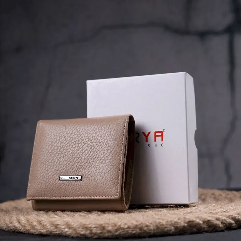 Практичный женский кошелек с монетницей из натуральной кожи KARYA 21381 Бежевый