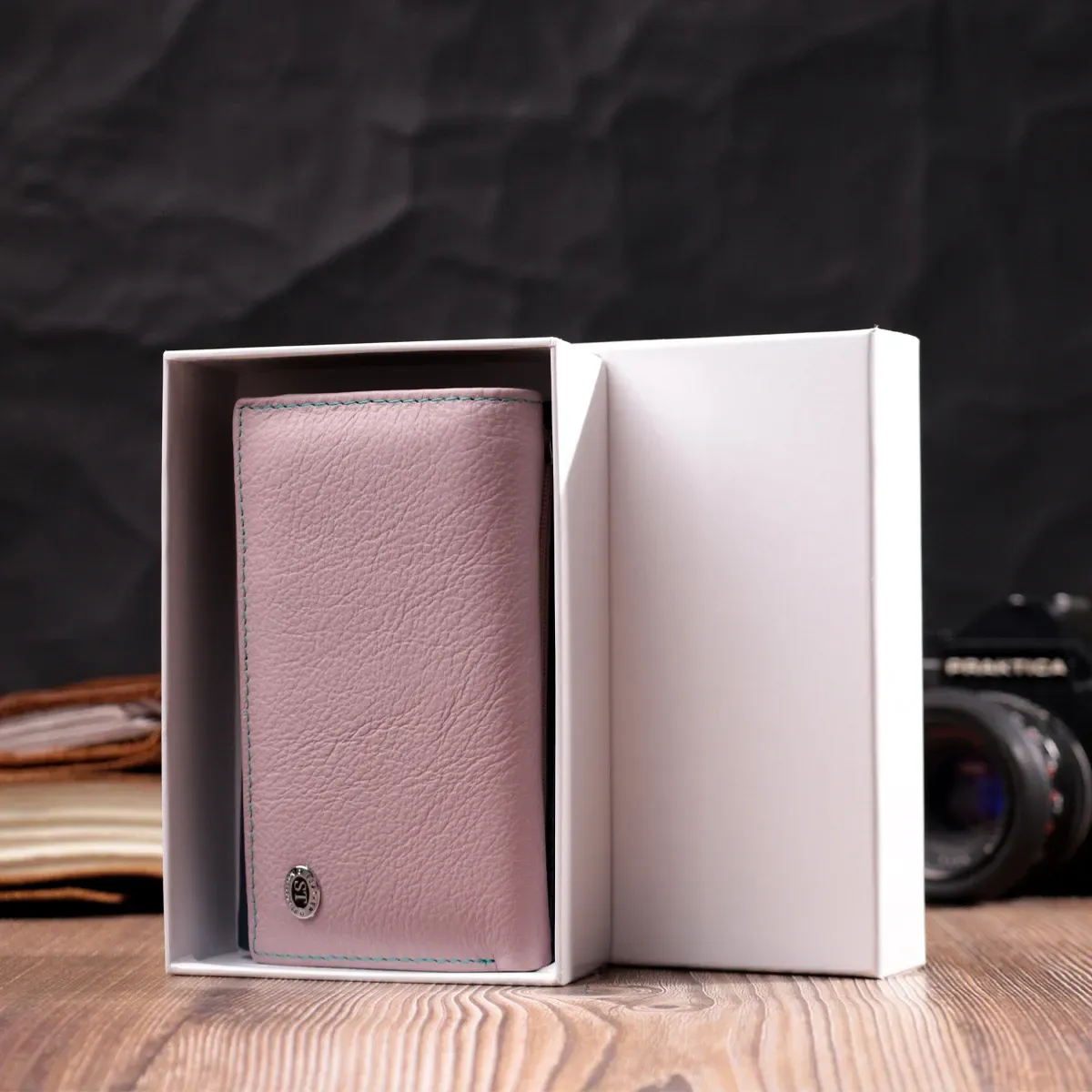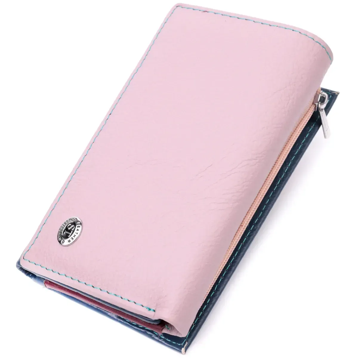 Практичный женский кошелек в три сложения из натуральной кожи ST Leather 19445 Разноцветный