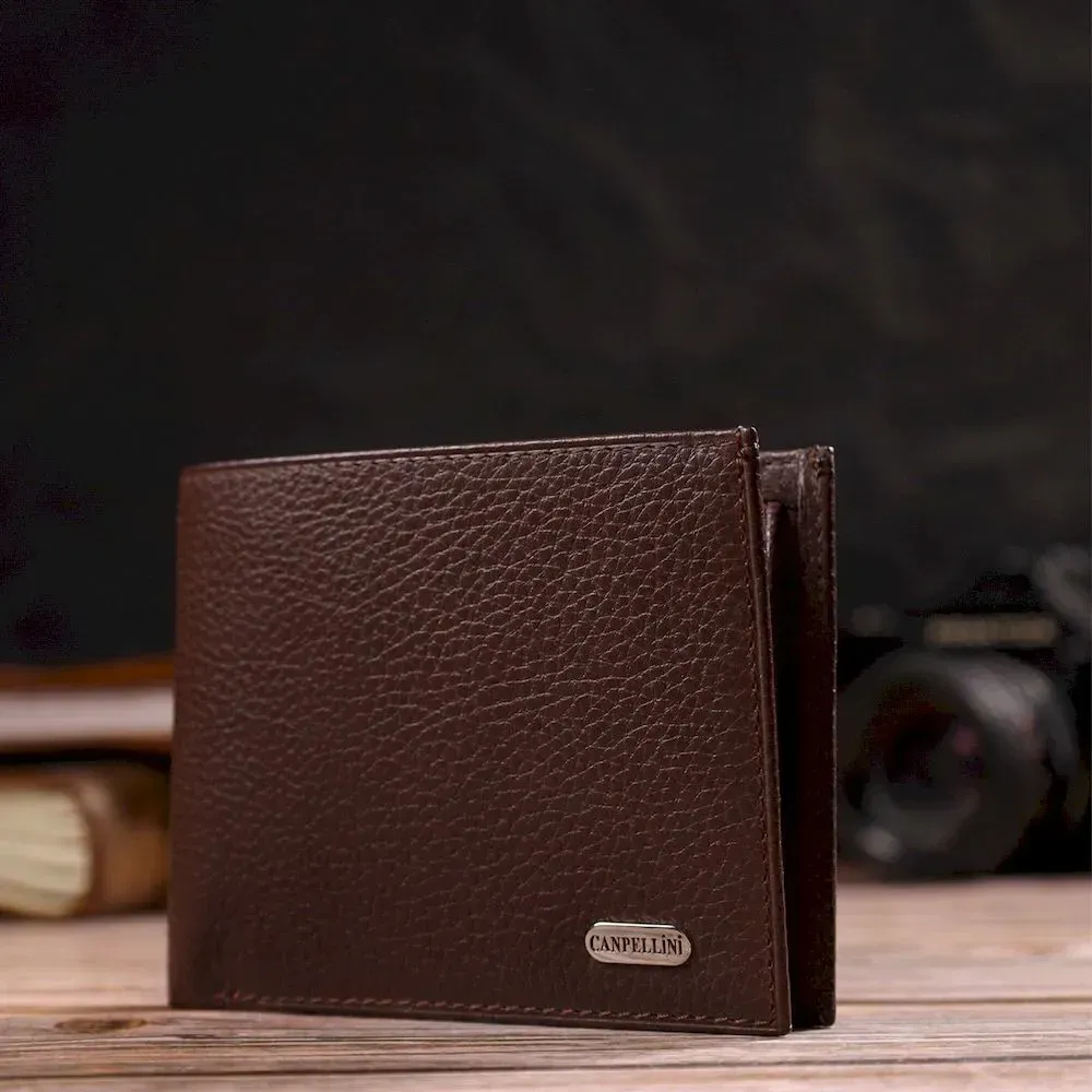 Превосходное мужское портмоне из натуральной зернистой кожи CANPELLINI 21775 Коричневое