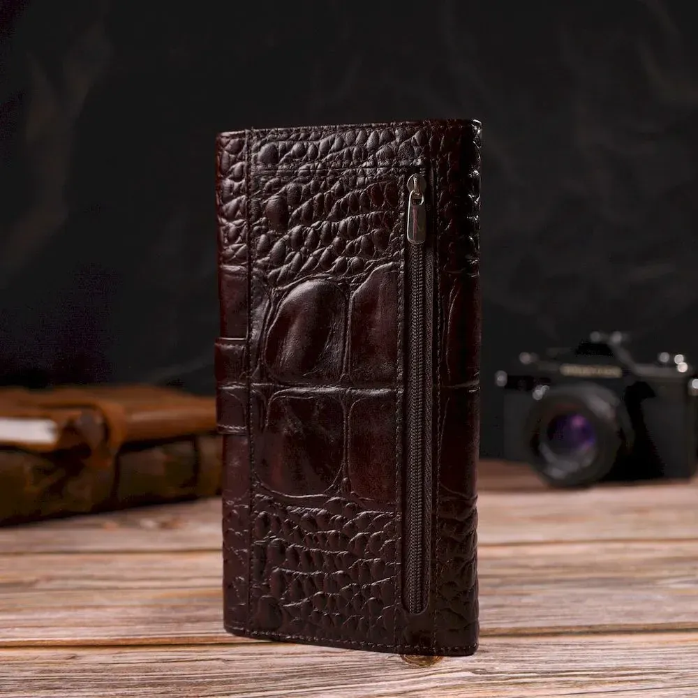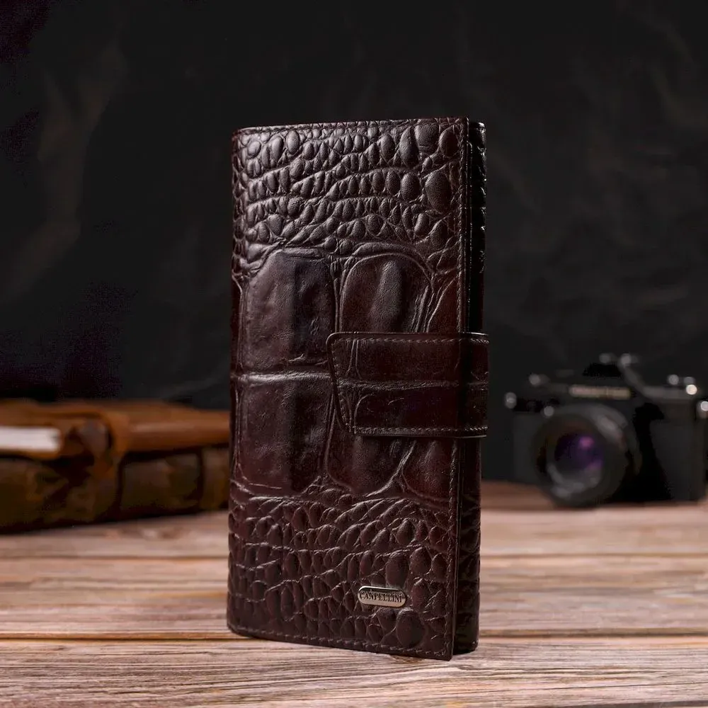 Превосходное стильное мужское портмоне из натуральной кожи с тиснением под крокодила CANPELLINI 21846 Коричневое