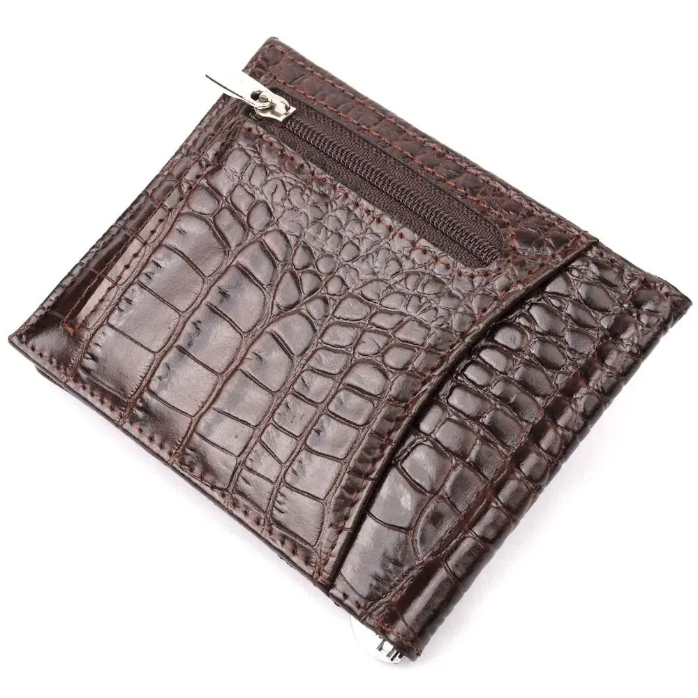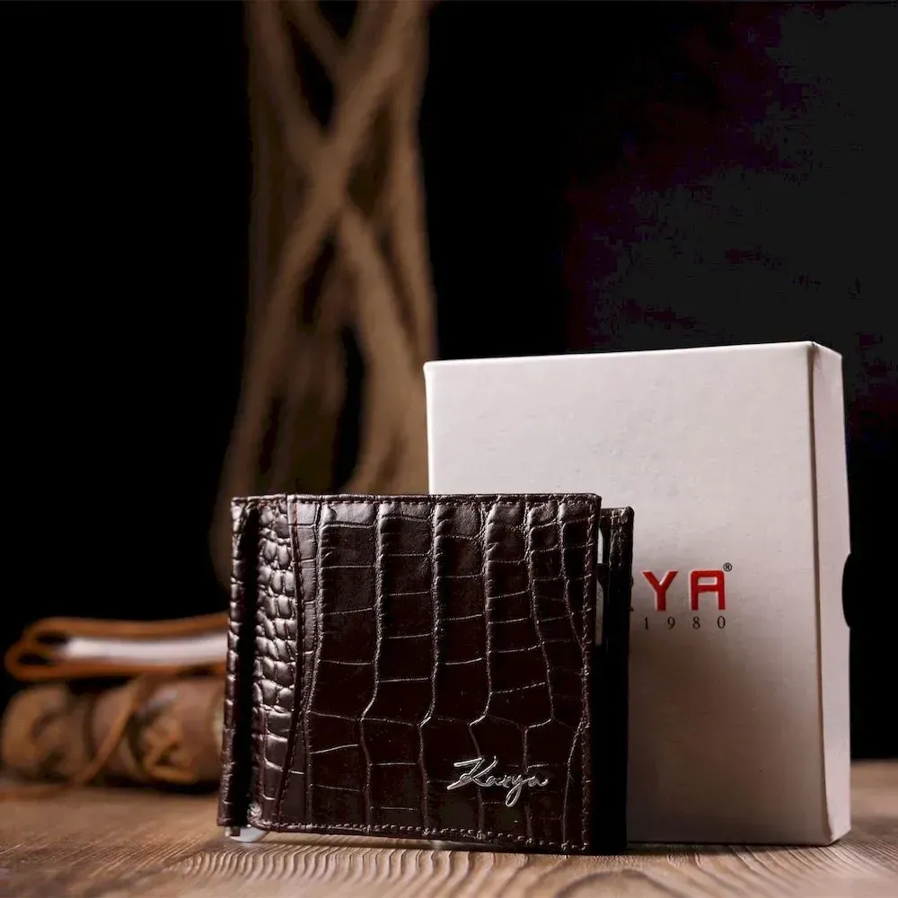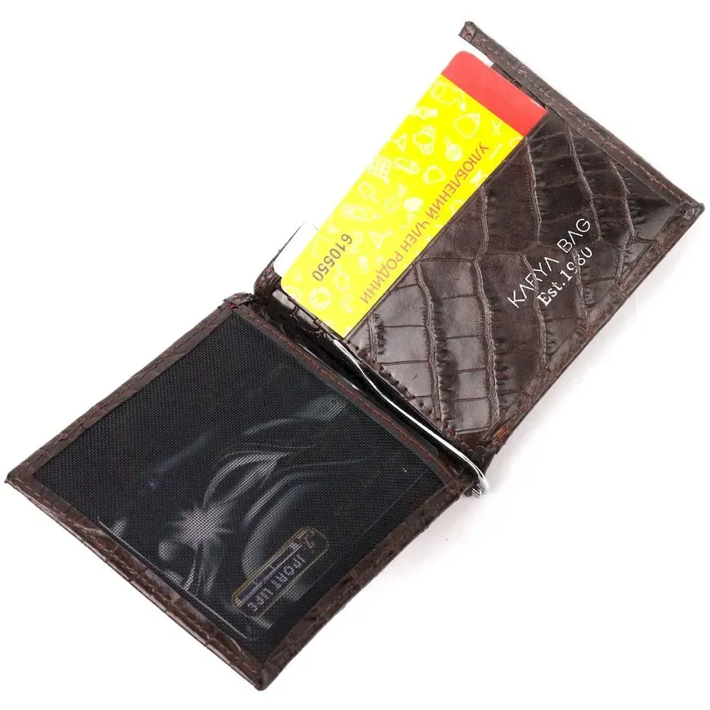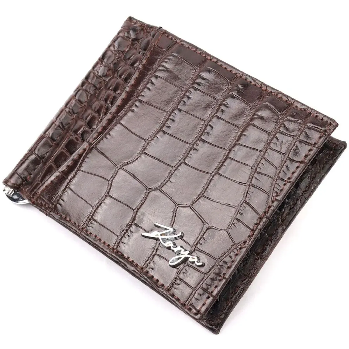 Превосходный мужской зажим из натуральной кожи с тиснением под крокодила KARYA 21119 Коричневый