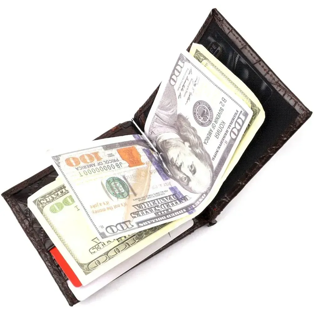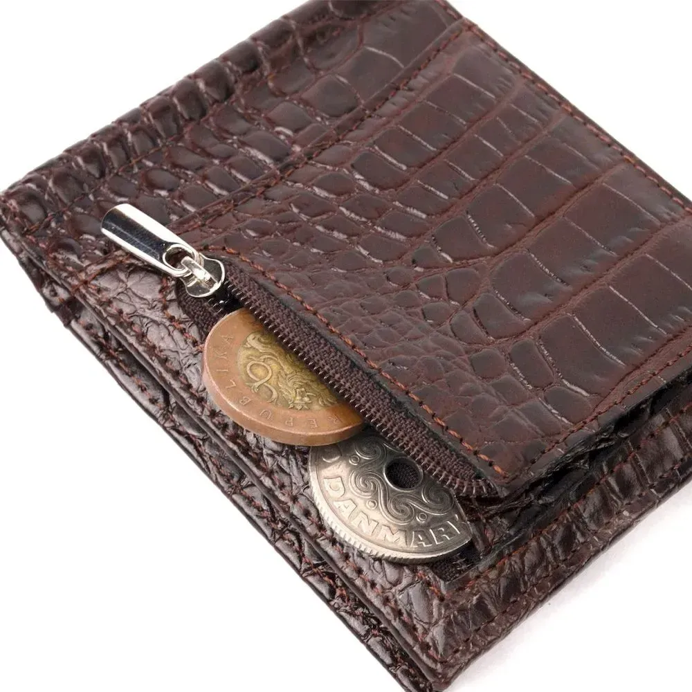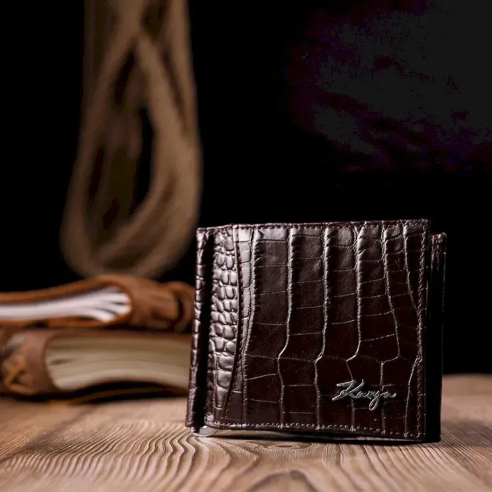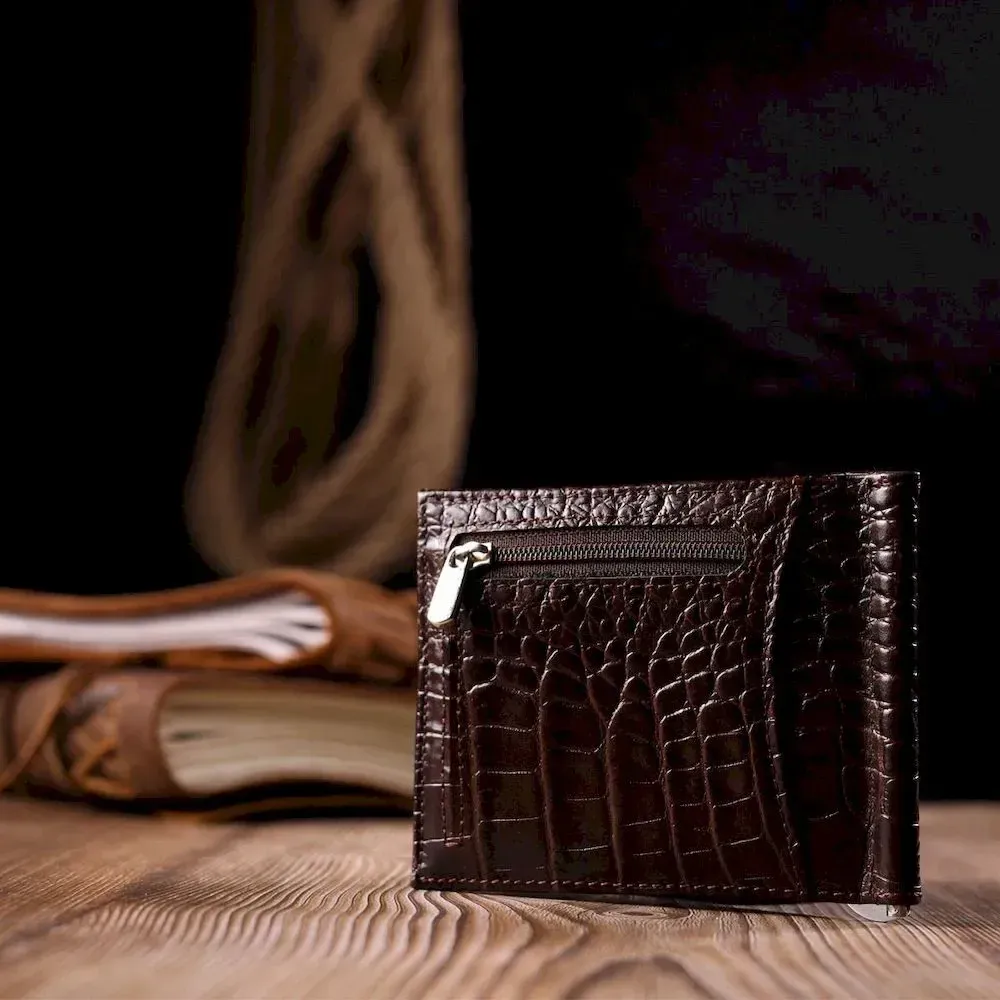 Превосходный мужской зажим из натуральной кожи с тиснением под крокодила KARYA 21119 Коричневый