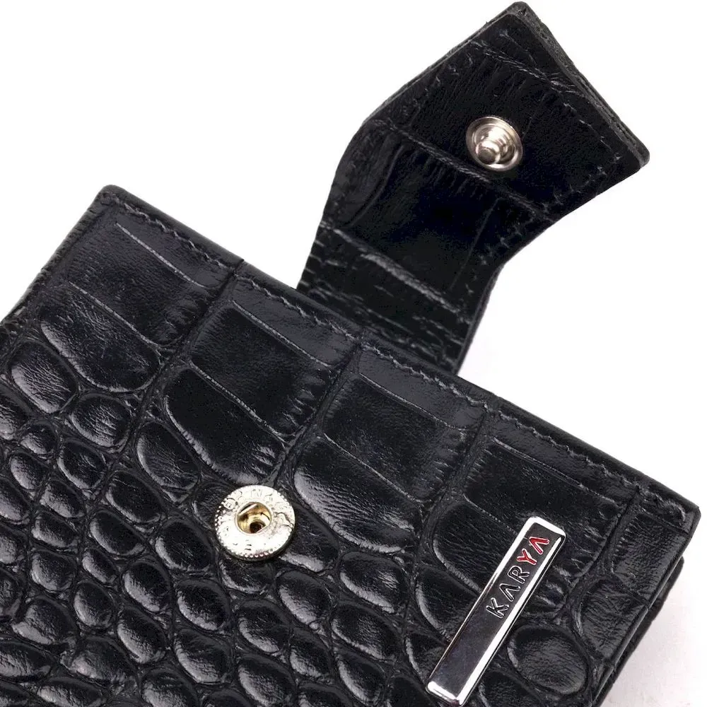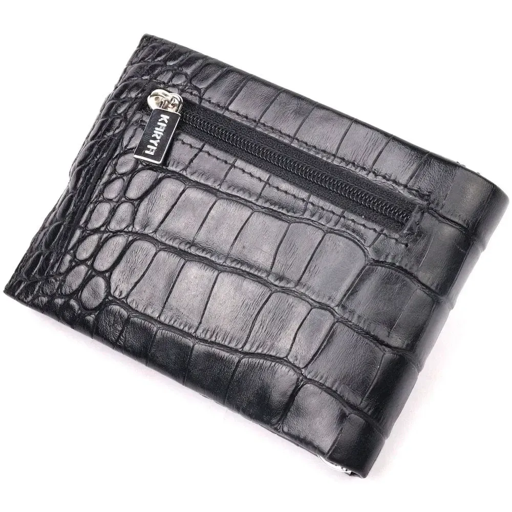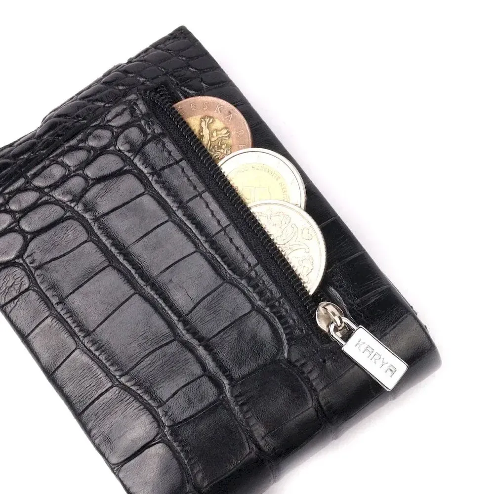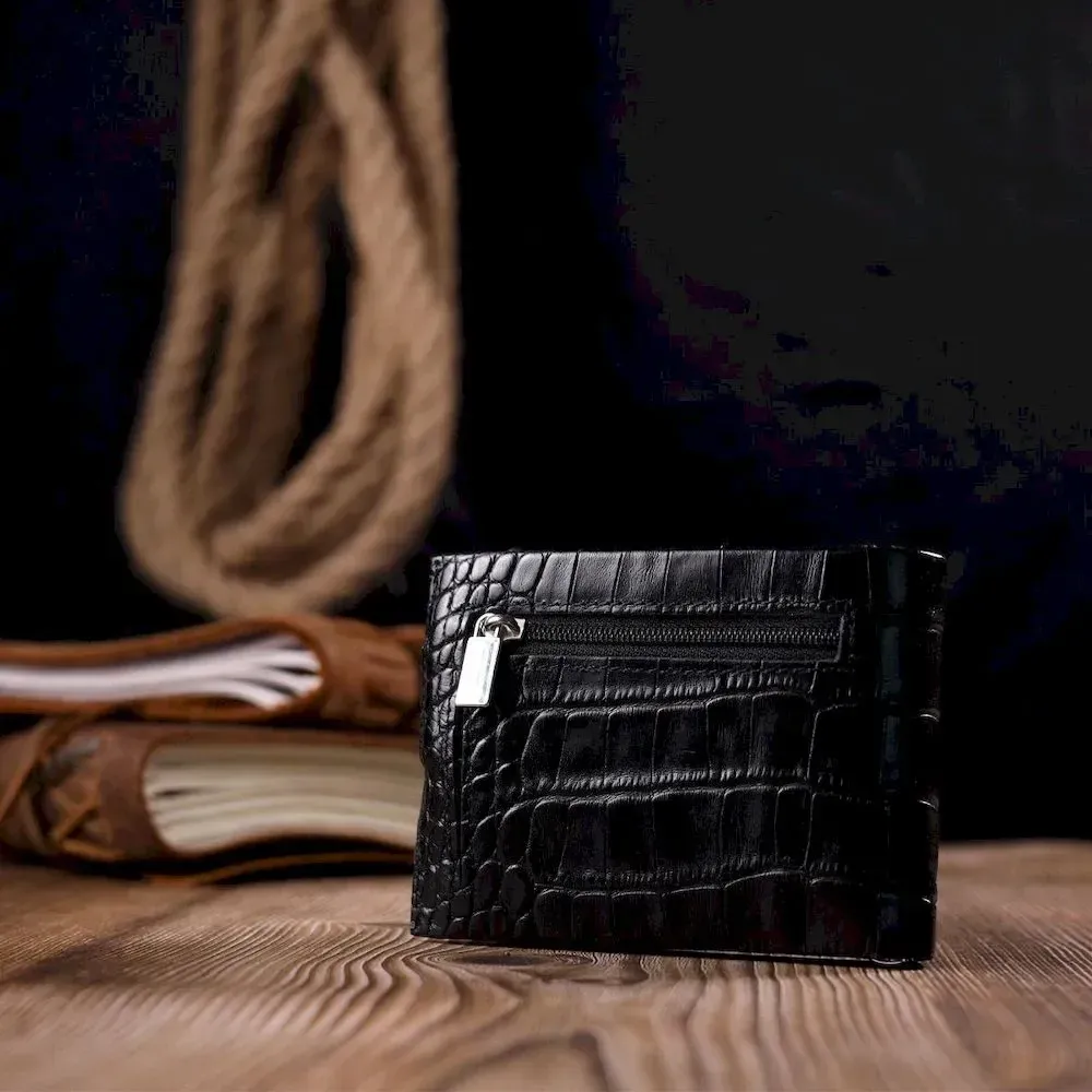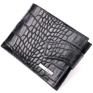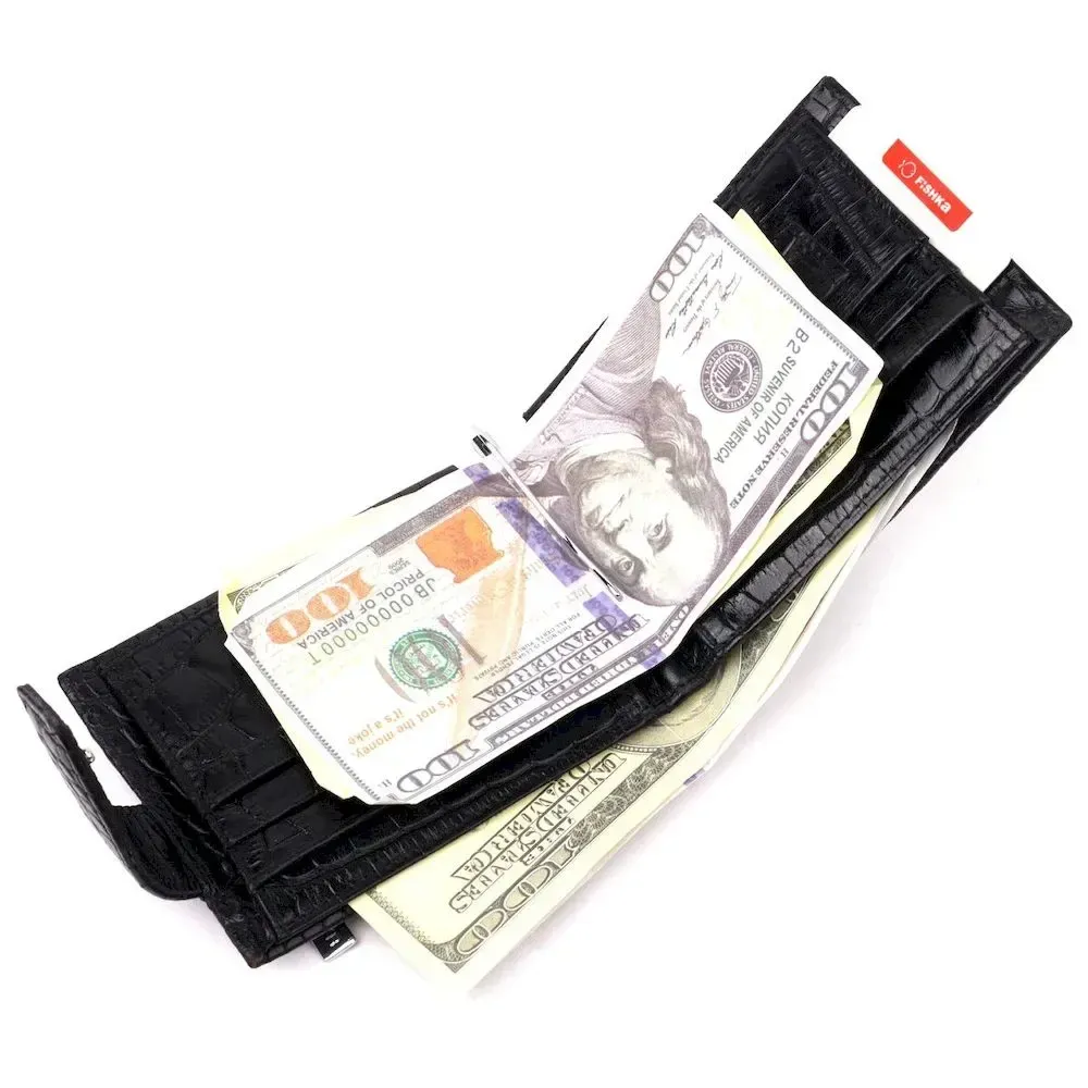 Превосходный мужской зажим из натуральной лакированной фактурной кожи под крокодила KARYA 21043 Черный
