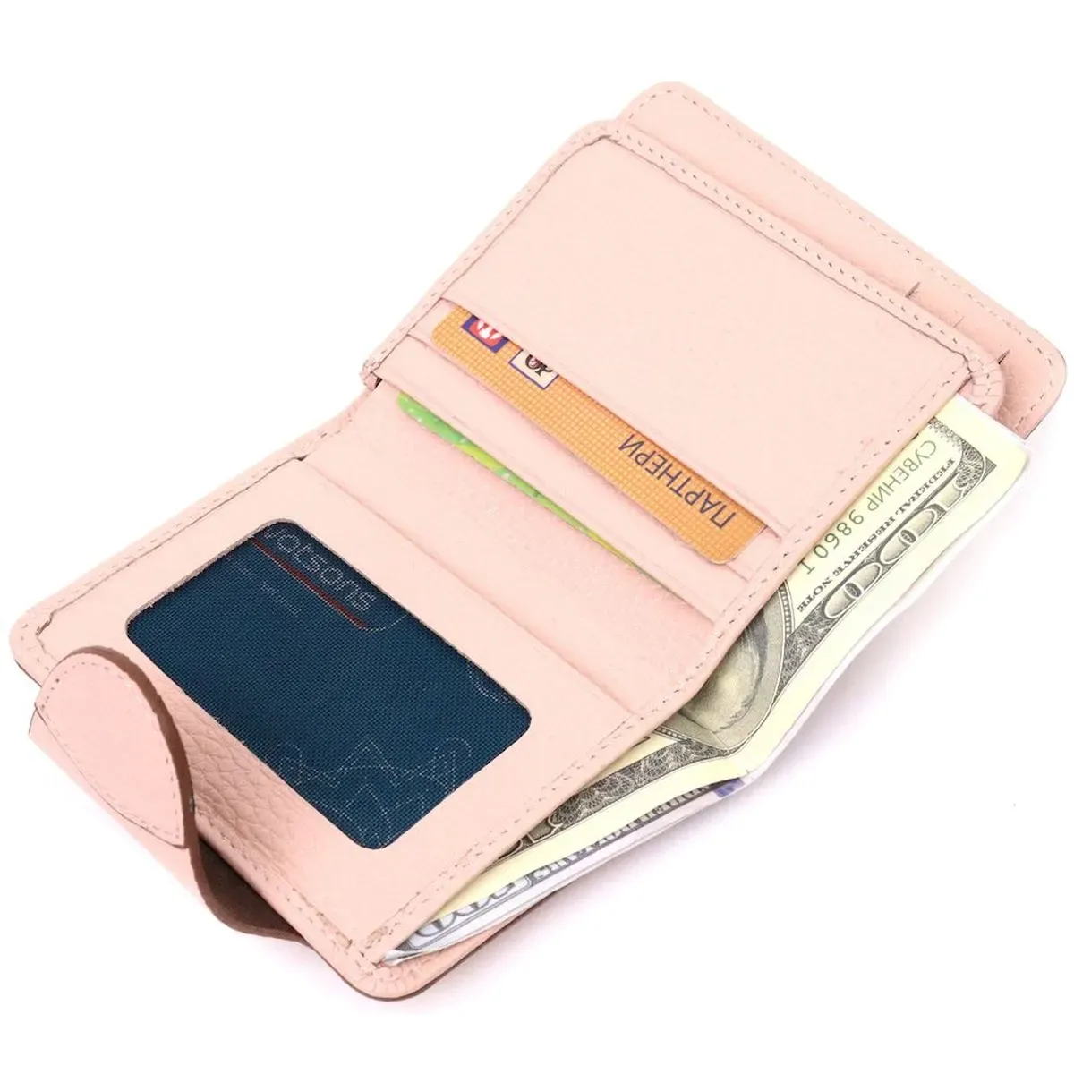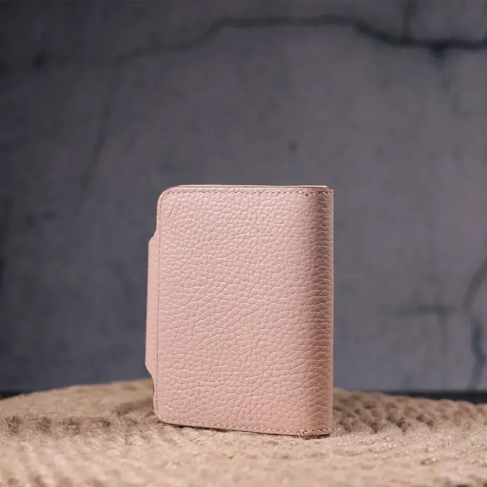 Практичный женский кошелек из натуральной кожи в розовом цвете. Складывается аксессуар пополам, с фиксацией на хлястик и кнопку. Качественная фурнитура дополняет и украшает изделие. Такой кошелек из натуральной кожи - это идеальный вариант на каждый день для тех, кто ценит качество, удобство и комфорт, а также будет отлично дополнять Ваш повседневный образ.