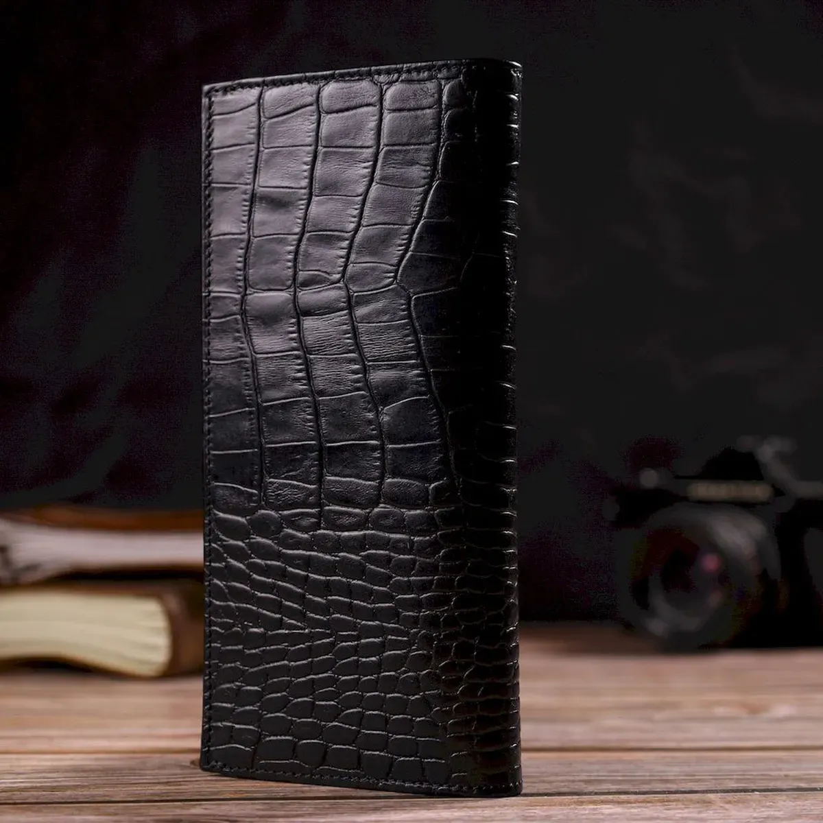 Привлекательный вертикальный мужской бумажник из натуральной кожи с тиснением под крокодила CANPELLINI 21896 Черный