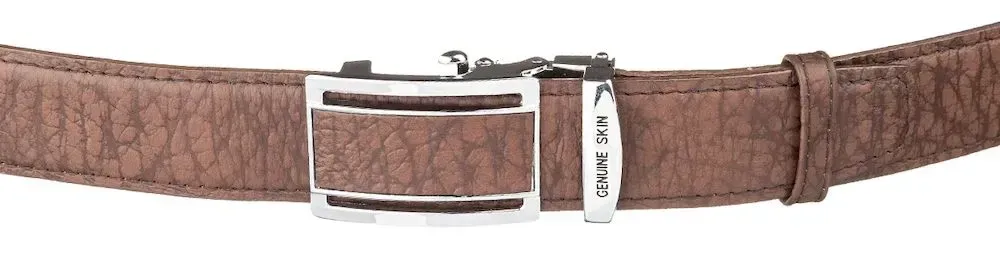Очень стильный ремень из натуральной кожи, с фартурой под кожу слона. Аксессуар изготовлен на основании из телячьей кожи. Изделие оборудовано съемной пряжкой в классическом стиле, которая декорированная вставкой из кожи, с фактурой под кожу слона. Ремень универсальный, его можно носить как под джинсы, так и под брюки.