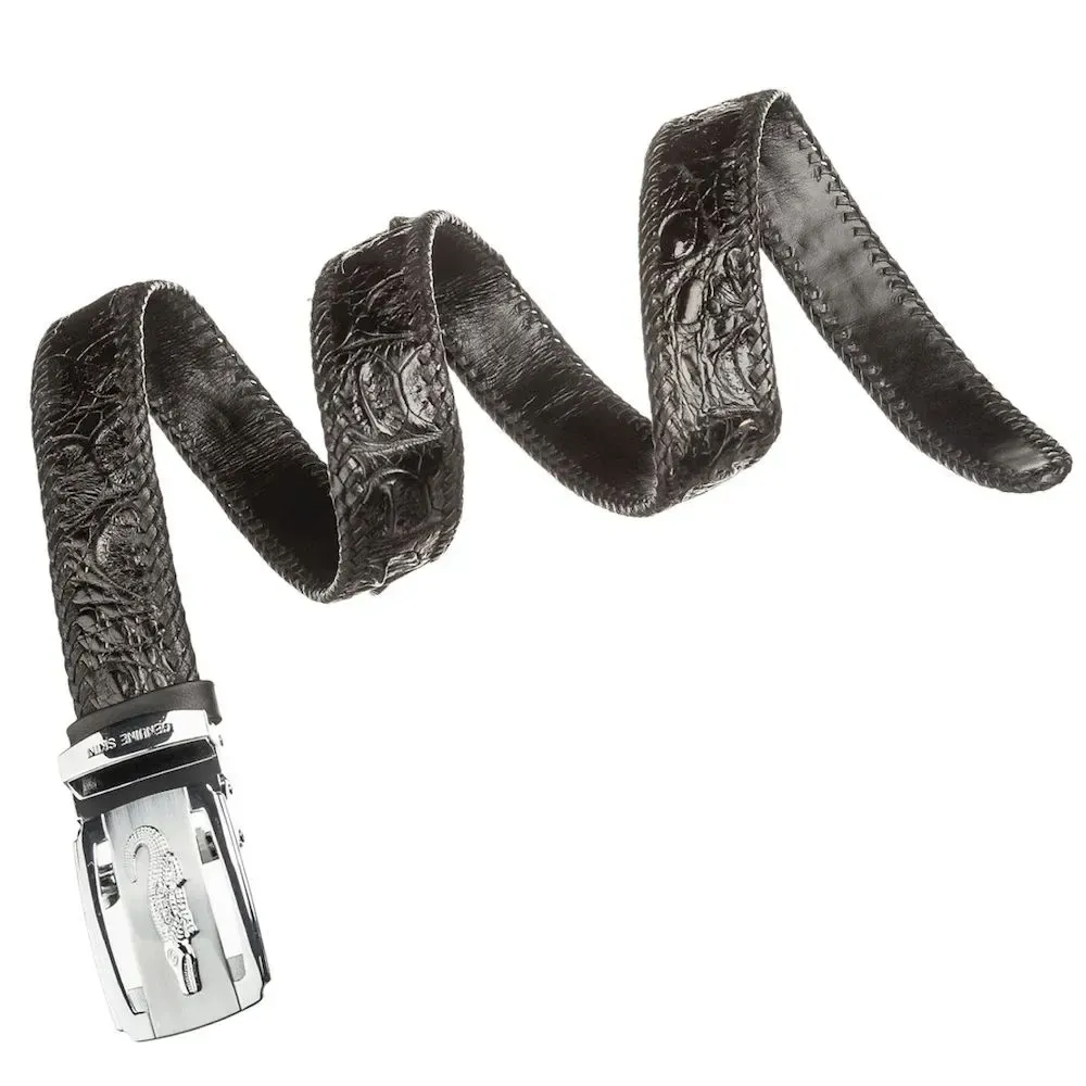 Ремень автоматический CROCODILE LEATHER 18604 из натуральной кожи крокодила Черный