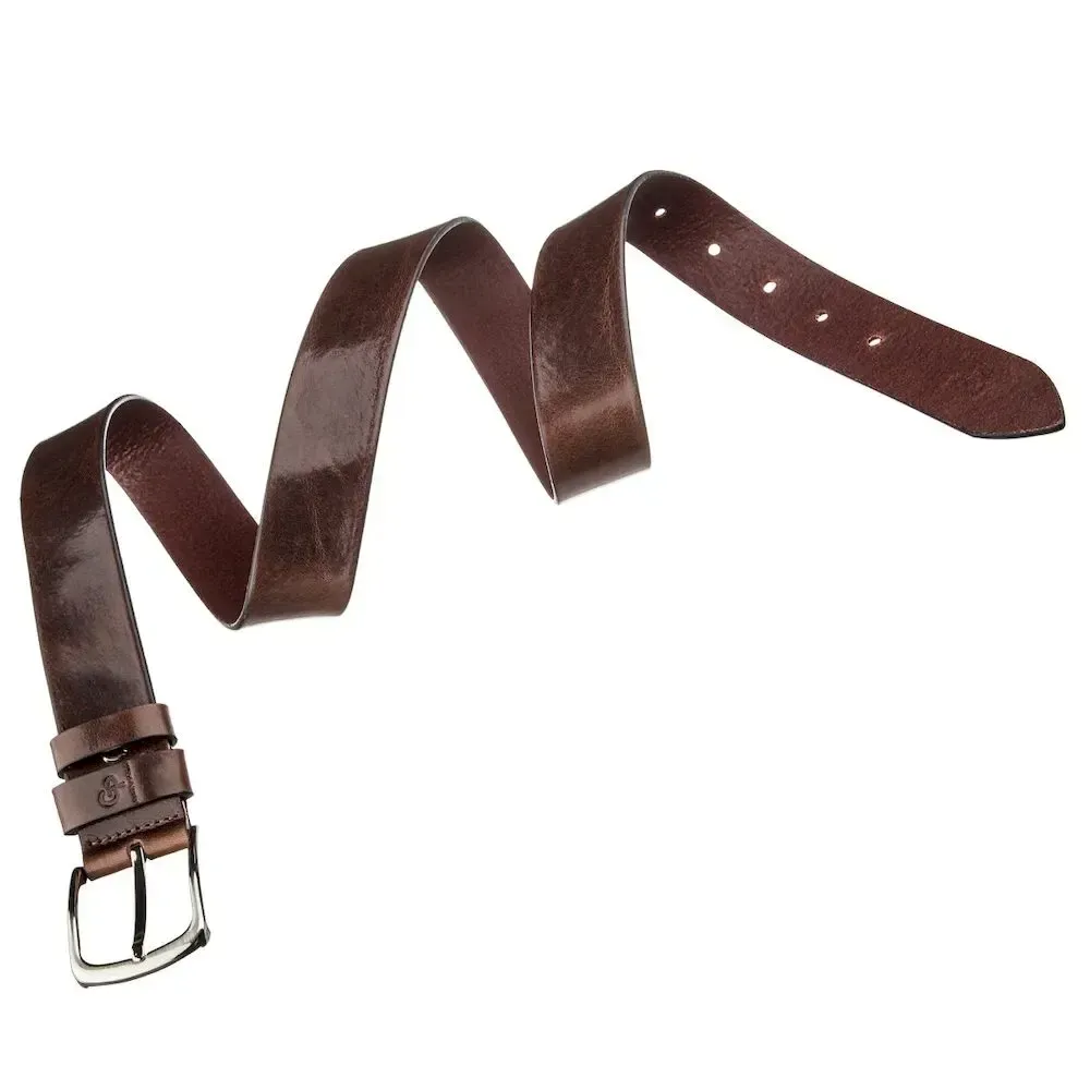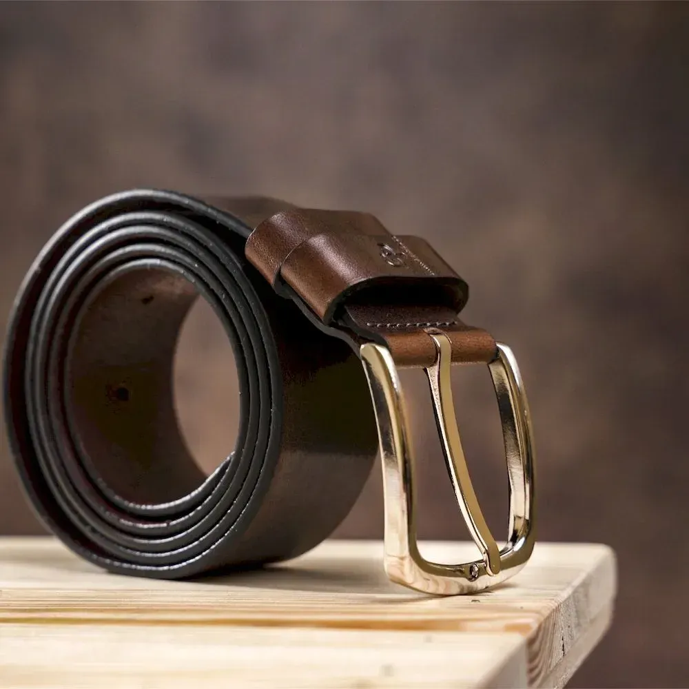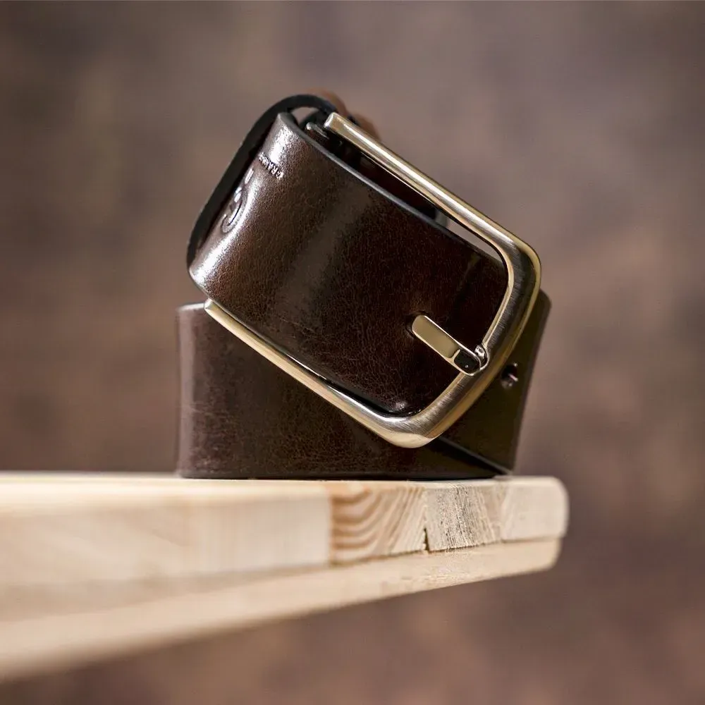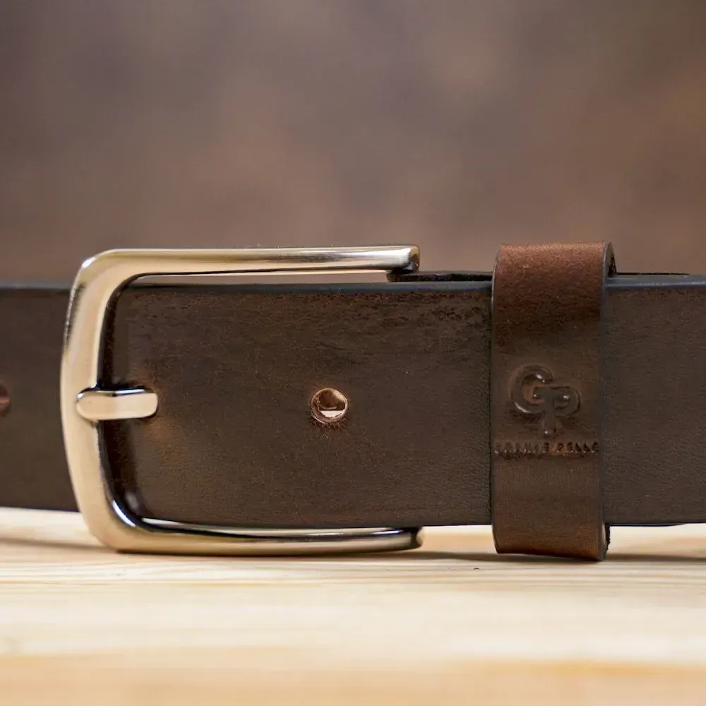 Великолепный классический ремень из плотной, итальянской натуральной кожи. Качественный кожаный ремень станет неотъемлемой частью безупречного образа. Ремень спокойного коричневого цвета. Аксессуар подойдет под любую обувь и одежду. Качественная пряжка серебристого цвета не выйдет из строя не один год. Классический ремень никогда не выходит из моды и остается на пике популярности многие сезоны. Если вы не знаете, какой ремень выбрать – рекомендуем вам ремни от данного бренда. Украинское качество в сочетании с итальянской кожей не оставят вас равнодушным.