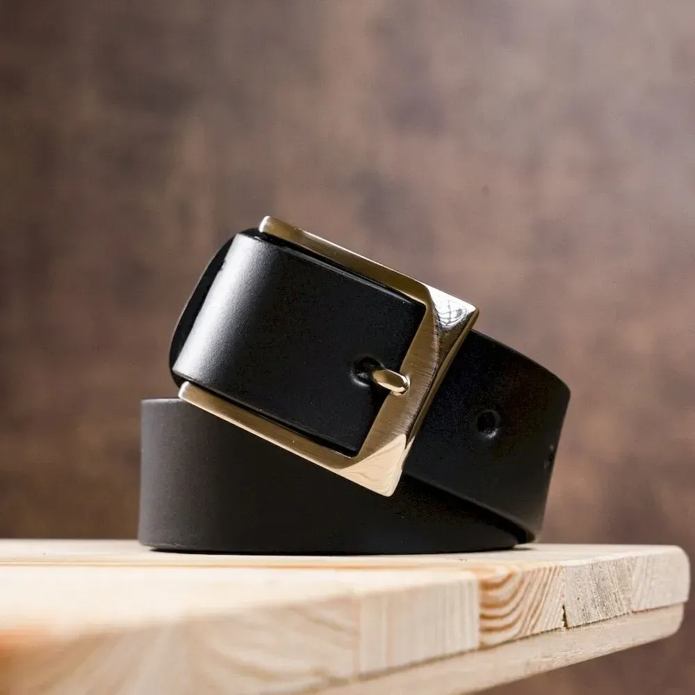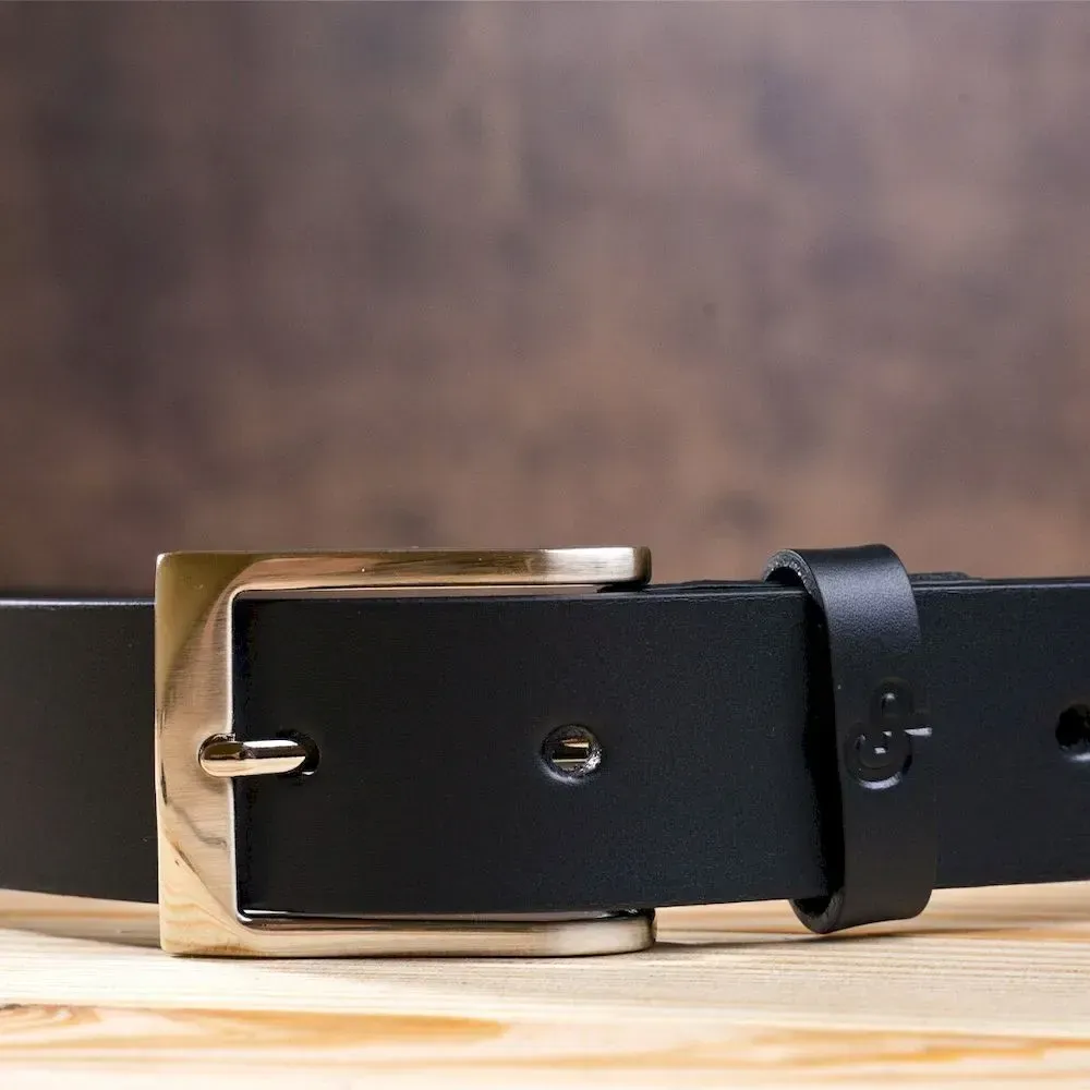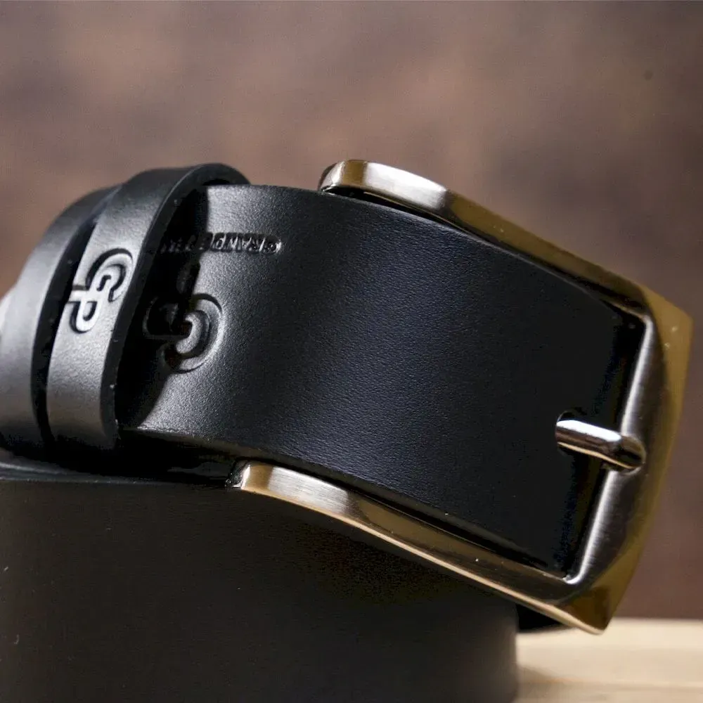 Стильный мужской ремень, черного цвета, изготовлен из натуральной кожи высокого качества. Высококачественный практичный аксессуар, который станет изумительным подарком для Ваших любимых и близких мужчин.