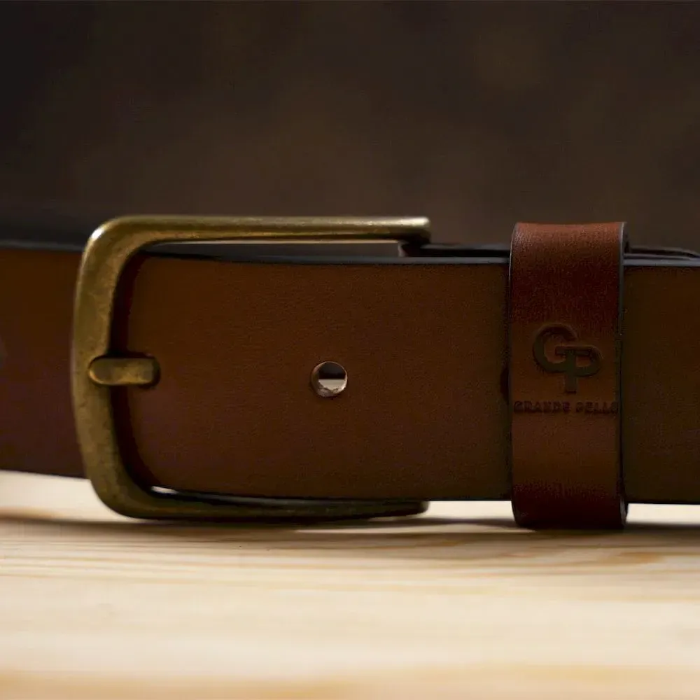 Красивый мужской ремень из итальянской кожи высокого качества.Такой ремень можно носить как под брюки, так и под джинсы. Аксессуар упакован в красивую подарочную коробку, что станет дополнительным бонусом, если Вы выберете его в качестве подарка.