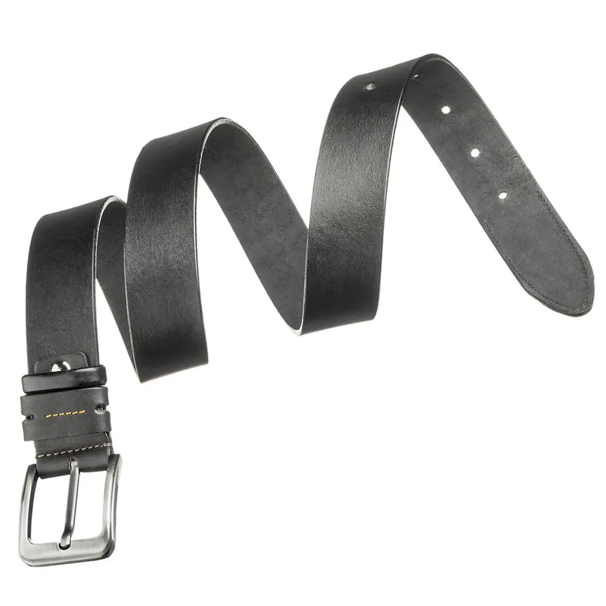 Ремень имеет гладкую поверхность черного цвета со строчкой на концах. Идеально подходит как для джинсов, так и брюк. Модель готова покорить даже самого переборчивого клиента. Выдержанный дизайн будет по душе любителям классики. В ремне используется качественная металлическая фурнитура цвета темного серебра прямоугольной формы с закругленными углами. Благодаря отточенной технологии производства имеет высокую износоустойчивость. Ремень упакован в фирменную коробку. Может быть отличным вариантом для подарка.