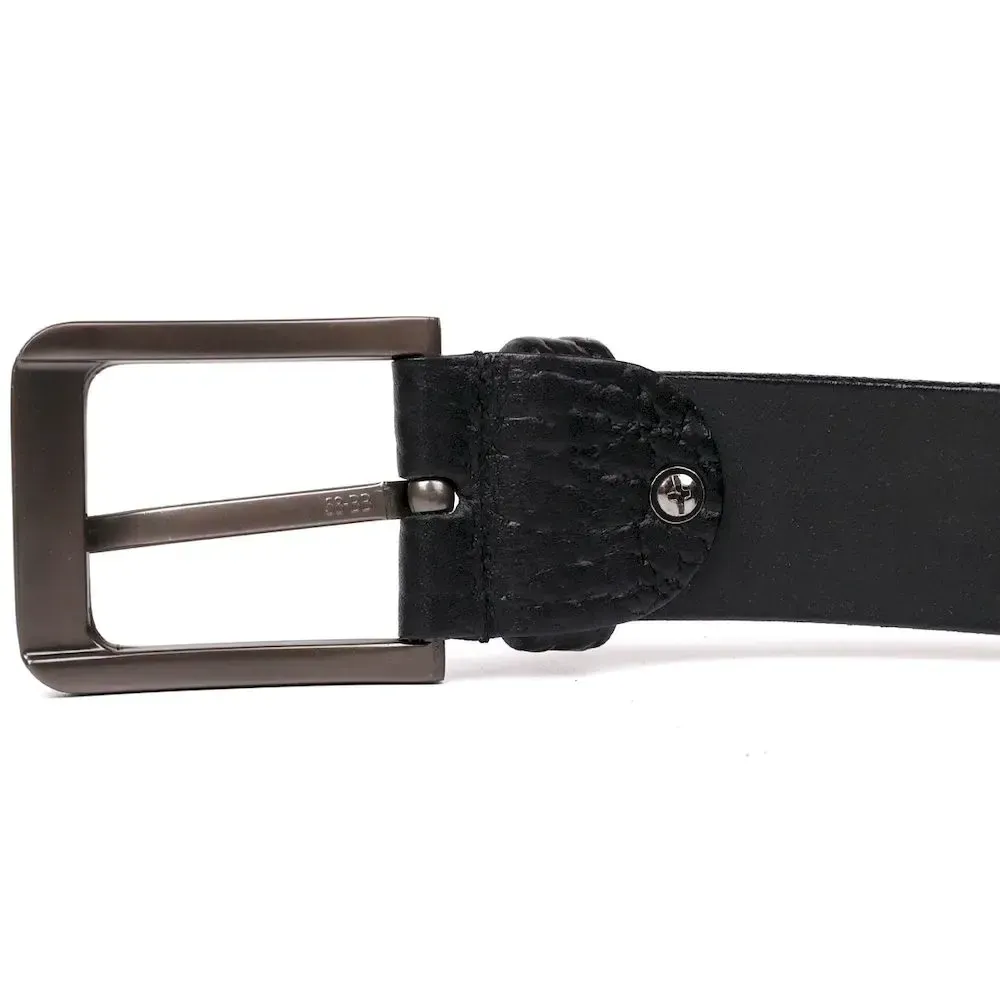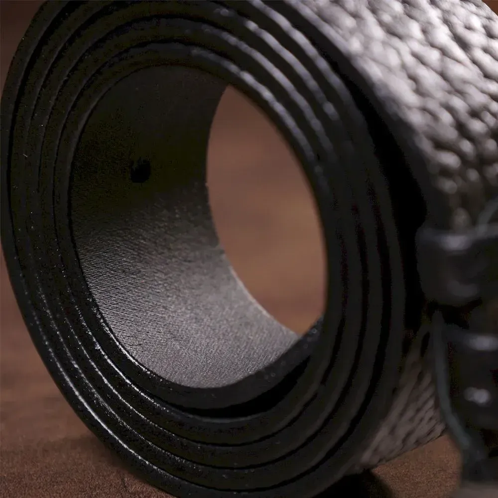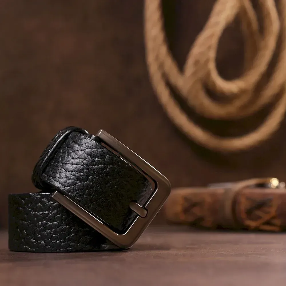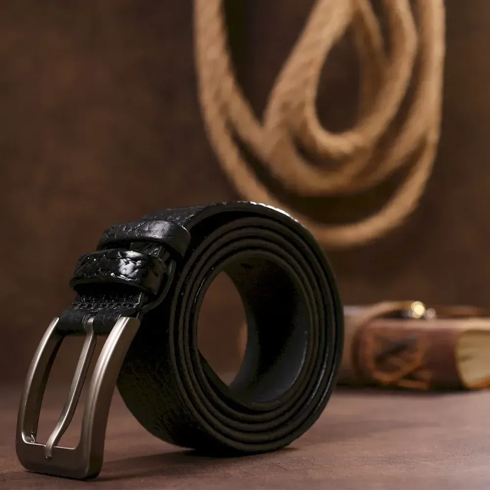 Ремень из натуральной кожи ручной работы прекрасно подойдёт под современный стиль как мужчине, так и женщине. Подойдет как для джинсов, так и для брюк. Имеет качественную фурнитуру прямоугольной формы и цвета темного серебра с закругленными краями и язычком. Благодаря надежности технологий изготовления наш ремень не только прослужит долго, но и не потеряет своего изначального вида. Модель имеет тисненную поверхность. Будет по душе даже самому привередливому клиенту. Отлично подойдет на подарок. Аксессуар упакован в фирменную коробку.