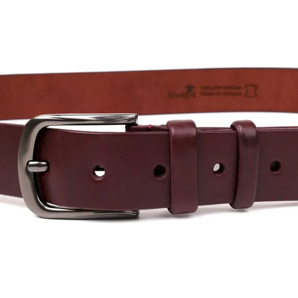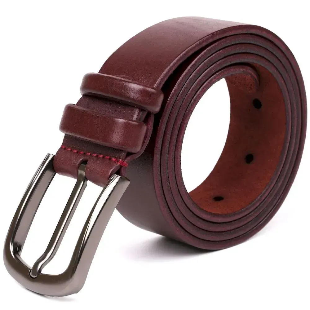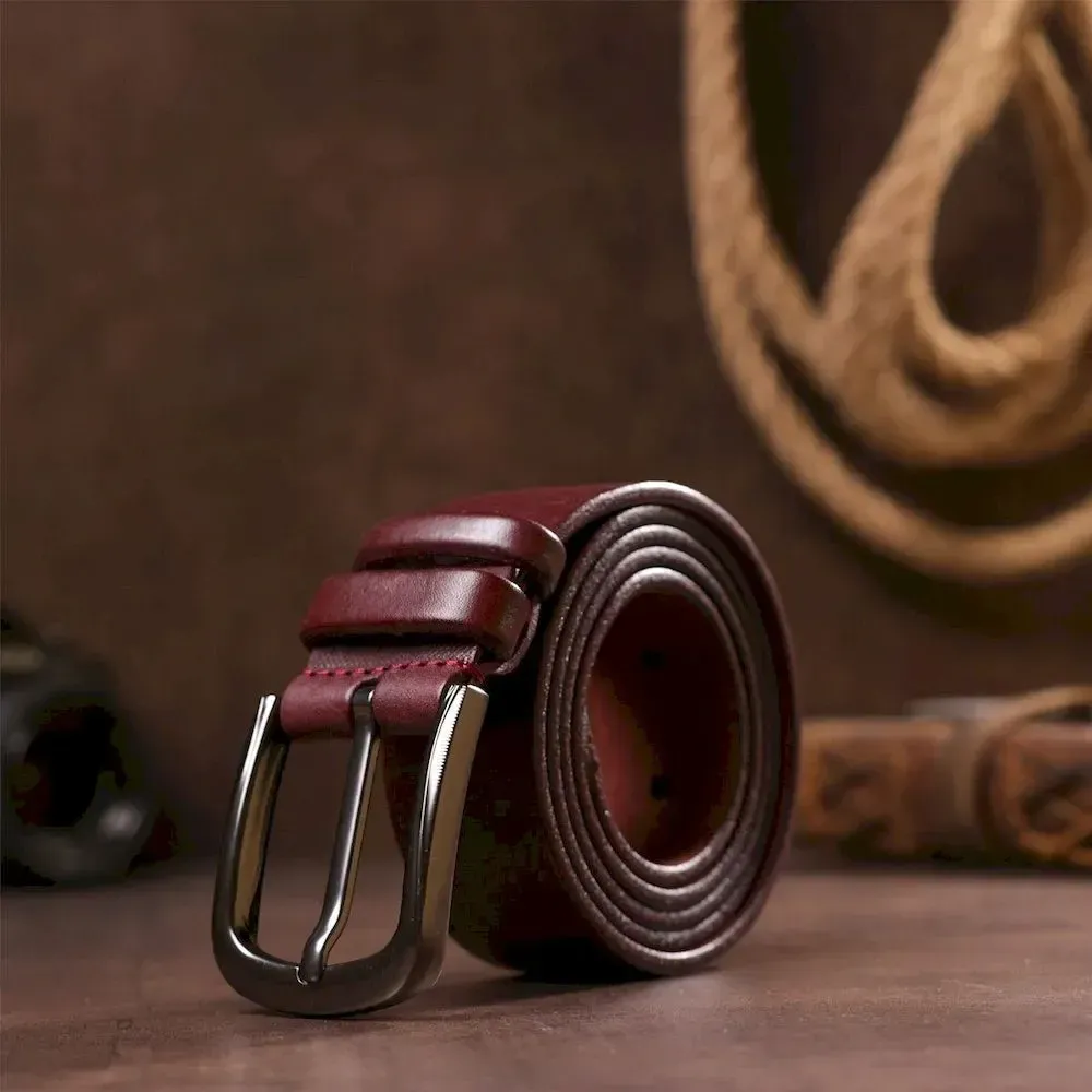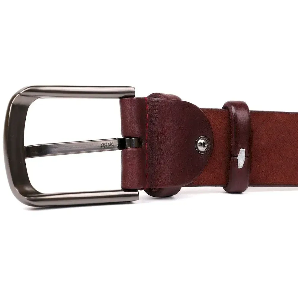 Полотно однотонное, коричневое, выполнено из натуральной кожи. Пряжка хромированная классической прямоугольной формы с одним язычком. Носится без сколов и царапин. Идеально подойдет для джинсов и брюк. Подчеркнет ваше чувство стиля. Модель выполнена с учетом модных тенденций.