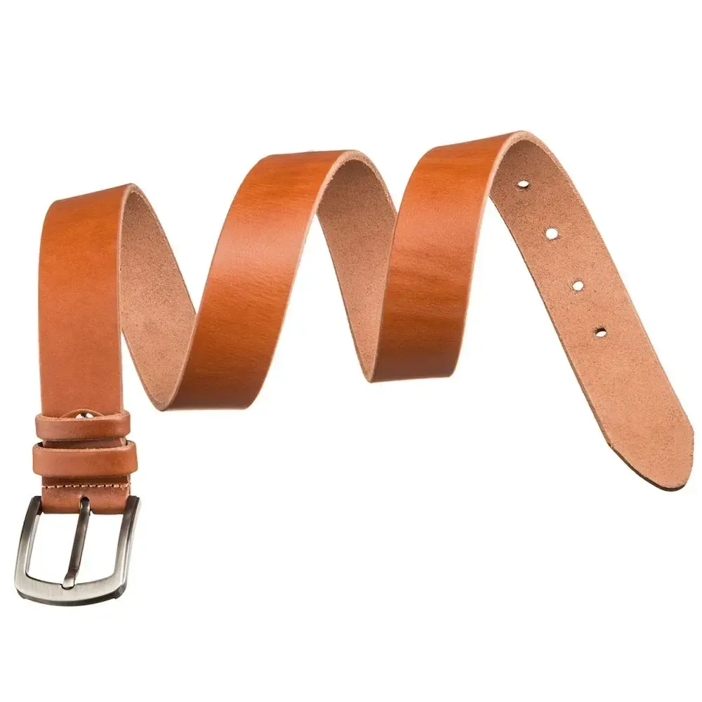 Модель выполнена из цельной кожи. Поверхность гладкая без надписей и тиснений. Цвет ремня светло-коричневый. Пряжка прямоугольной формы, серебристого цвета с одной спицей для фиксации. При необходимости, длину полотна можно подогнать до нужного размера. Ремень отлично будет смотреться под светлые брюки или деловой костюм. Выделит вас из толпы. Аксессуар имеет классический дизайн. За счет качественного материала ремень долго носится.