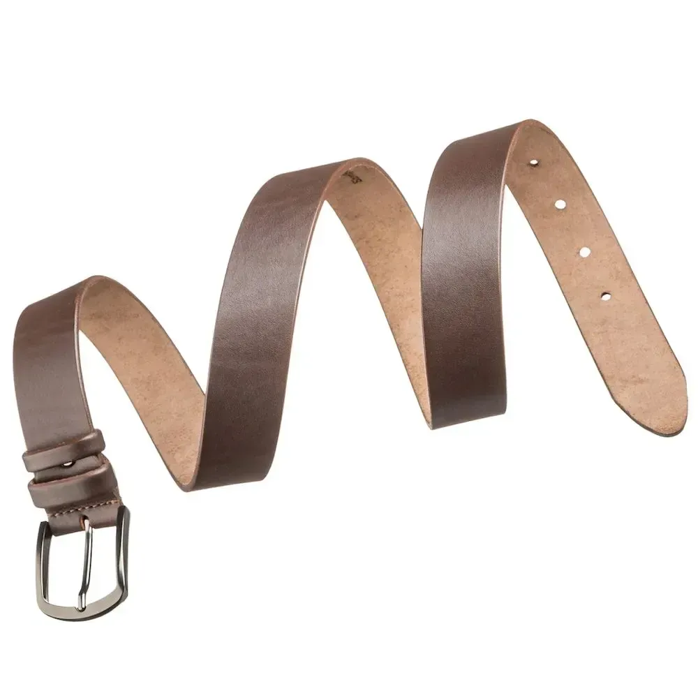 Стильный мужской кожаный и прочный ремень. Идеально подойдет как для себя так и на подарок для мужчины. Коричневый цвет ремня не оставит вас без внимания. Застежка серебристого цвета из качественного металла не ломается и не царапается. Лаконичный дизайн делает ремень более универсальным в использовании. Можно носить как под брюки так и под джинсы. При желании легко регулируется под нужную длину. Модель без надписей и узоров.