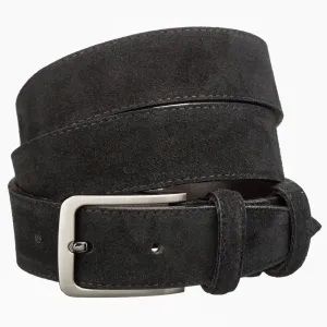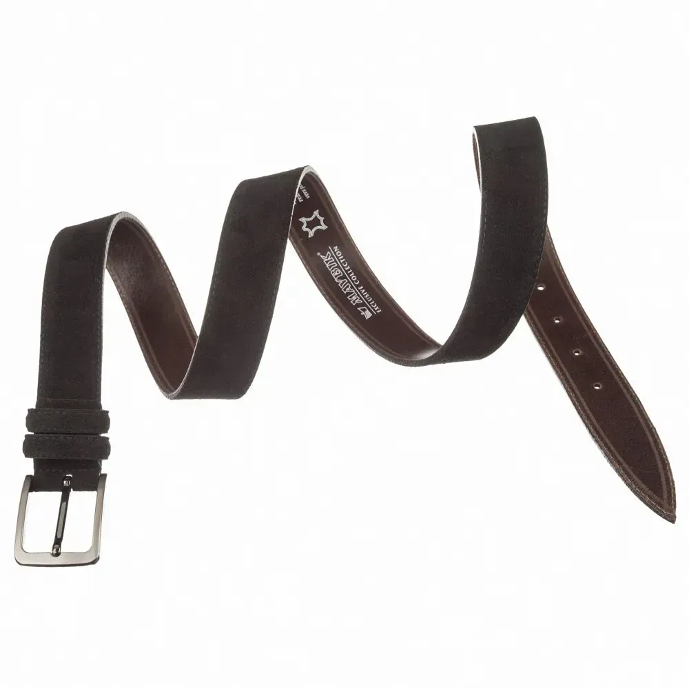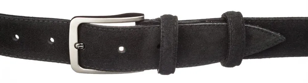 Красивый замшевый ремень, черного цвета, изготовлен из высококачественной натуральной кожи. Ремень будет шикарно смотреться вместе с джинсами или брюками. Стильный высококлассный аксессуар для стильных и современных людей. Отлично подойдет для подарка, так как упакован в красивую коробочку.