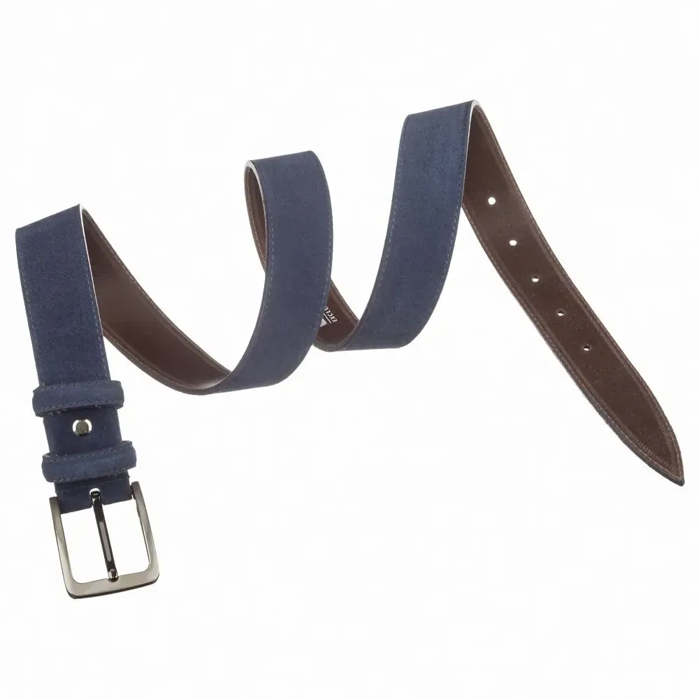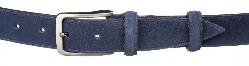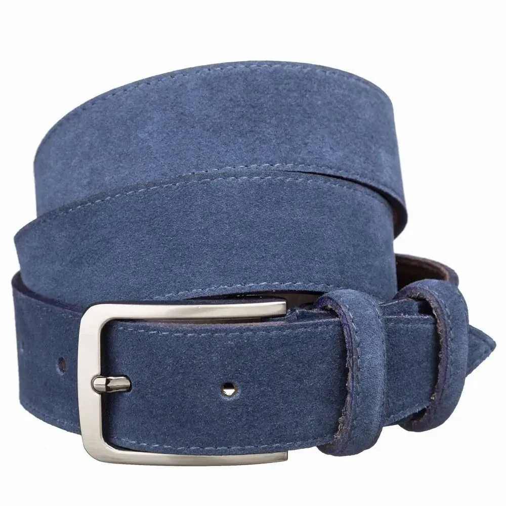 Роскошный замшевый ремень, синего цвета, изготовлен из высококачественной натуральной кожи. Ремень будет шикарно смотреться вместе с джинсами или брюками. Стильный высококлассный аксессуар подойдет как женщинам, так и мужчинам. Отлично подойдет в качестве подарка родным и близким людям.
