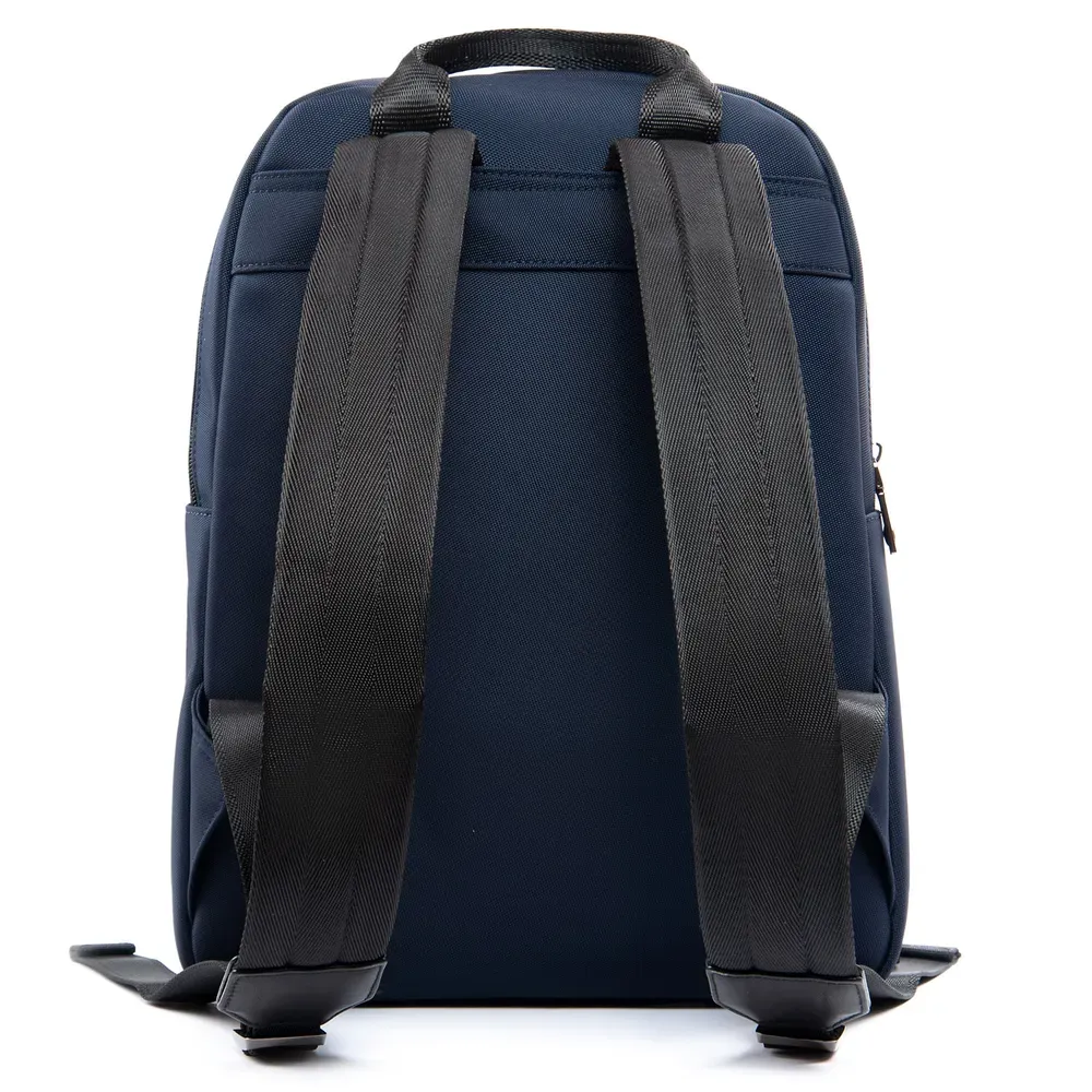 Изготовлен из нейлона плотного плетения с кожаными вставками. Два отделения, закрываются на молнии. Внутри отделений находятся большой карман на молнии и карман для нетбука или планшета. На фасаде рюкзака расположен вместительный карман на молнии.