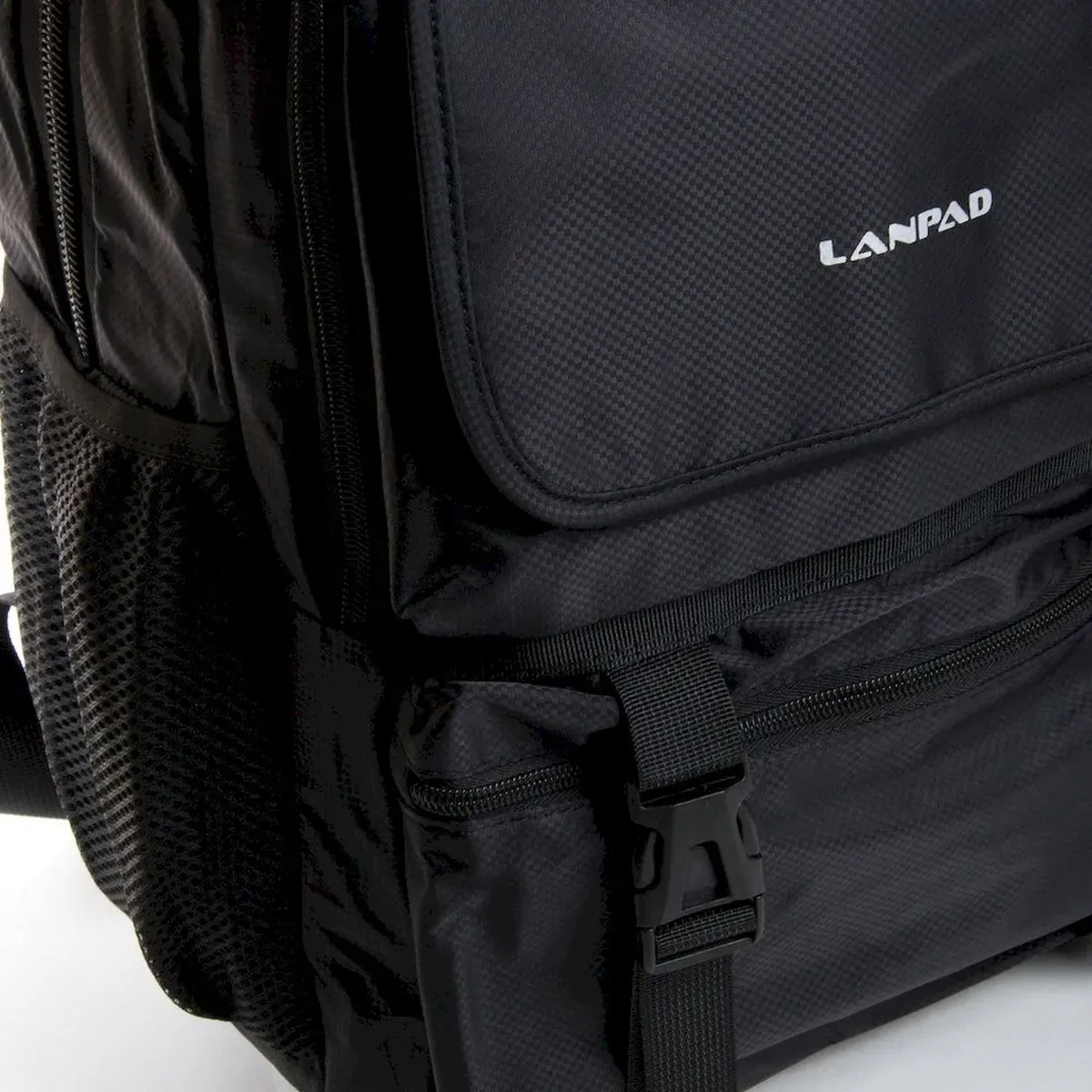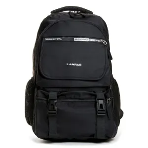 Рюкзак городской Lanpad. Изготовлен из материала с водоотталкивающим покрытием. Рельефная уплотненная спинка. Два отделения, закрываются на молнию. Внутри есть боковой открытый двойной карман и карман для ноутбука. На фасаде находится два кармана на молнии и один открытый под клапаном. На боковых стенках есть карманы-сетки. Плечевые лямки регулируется по длине.