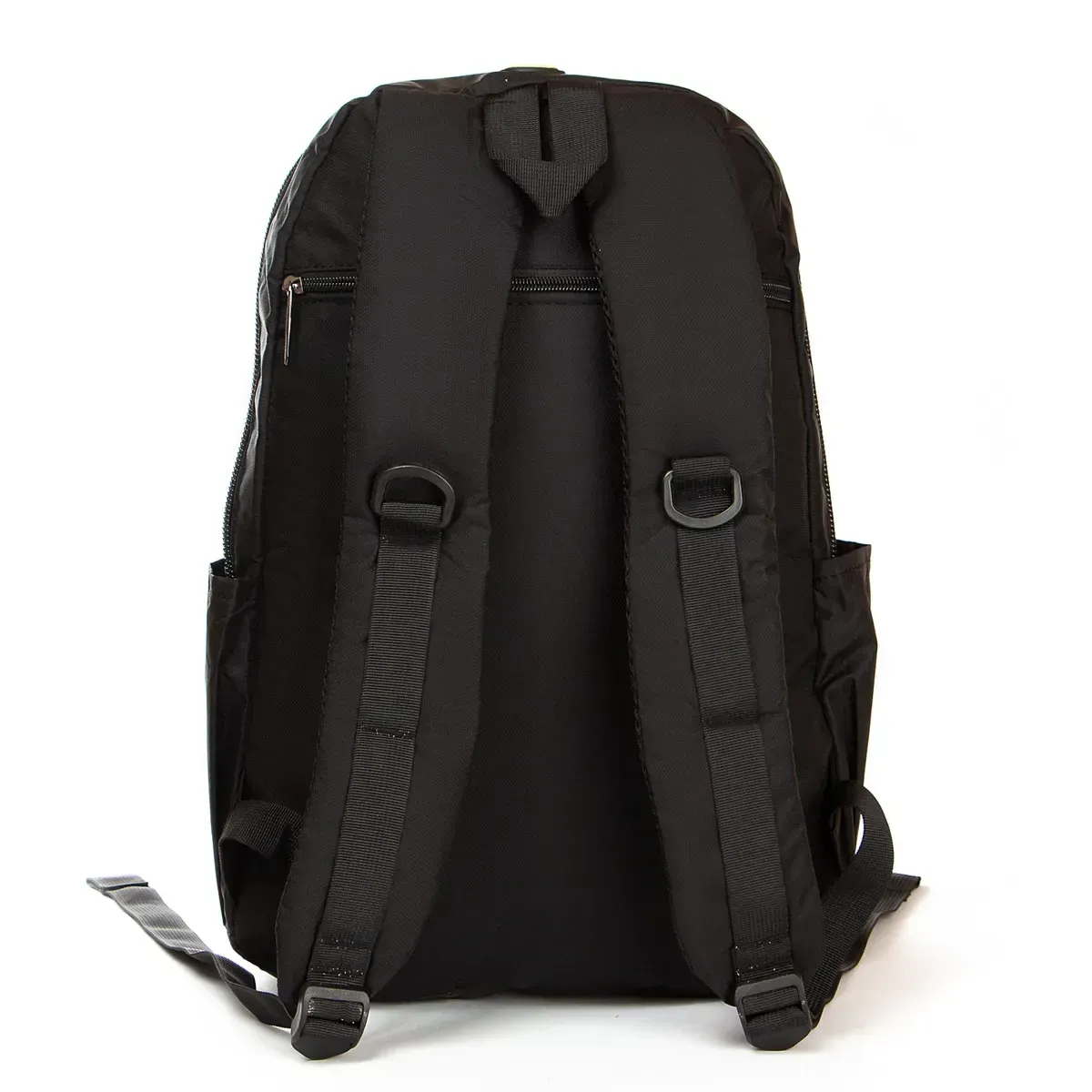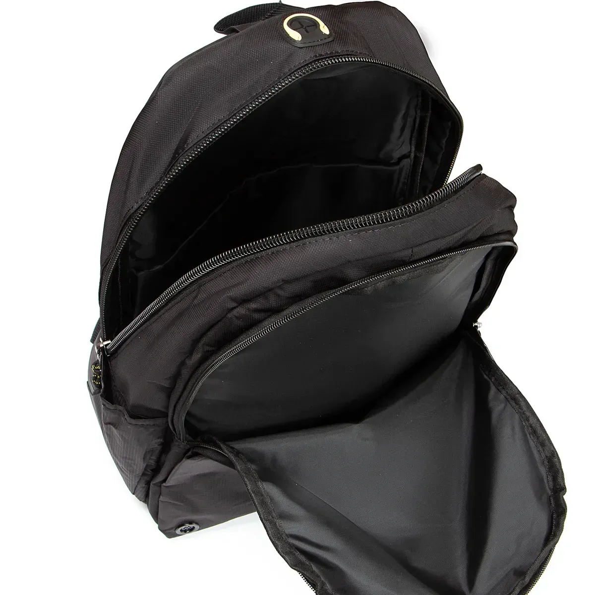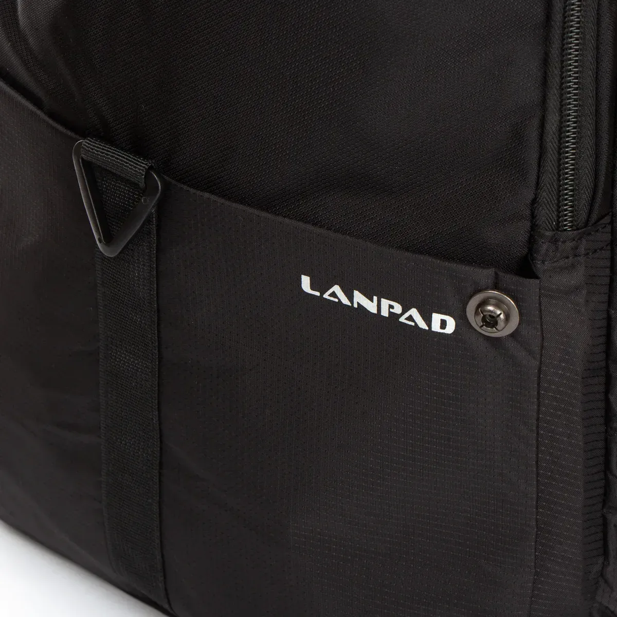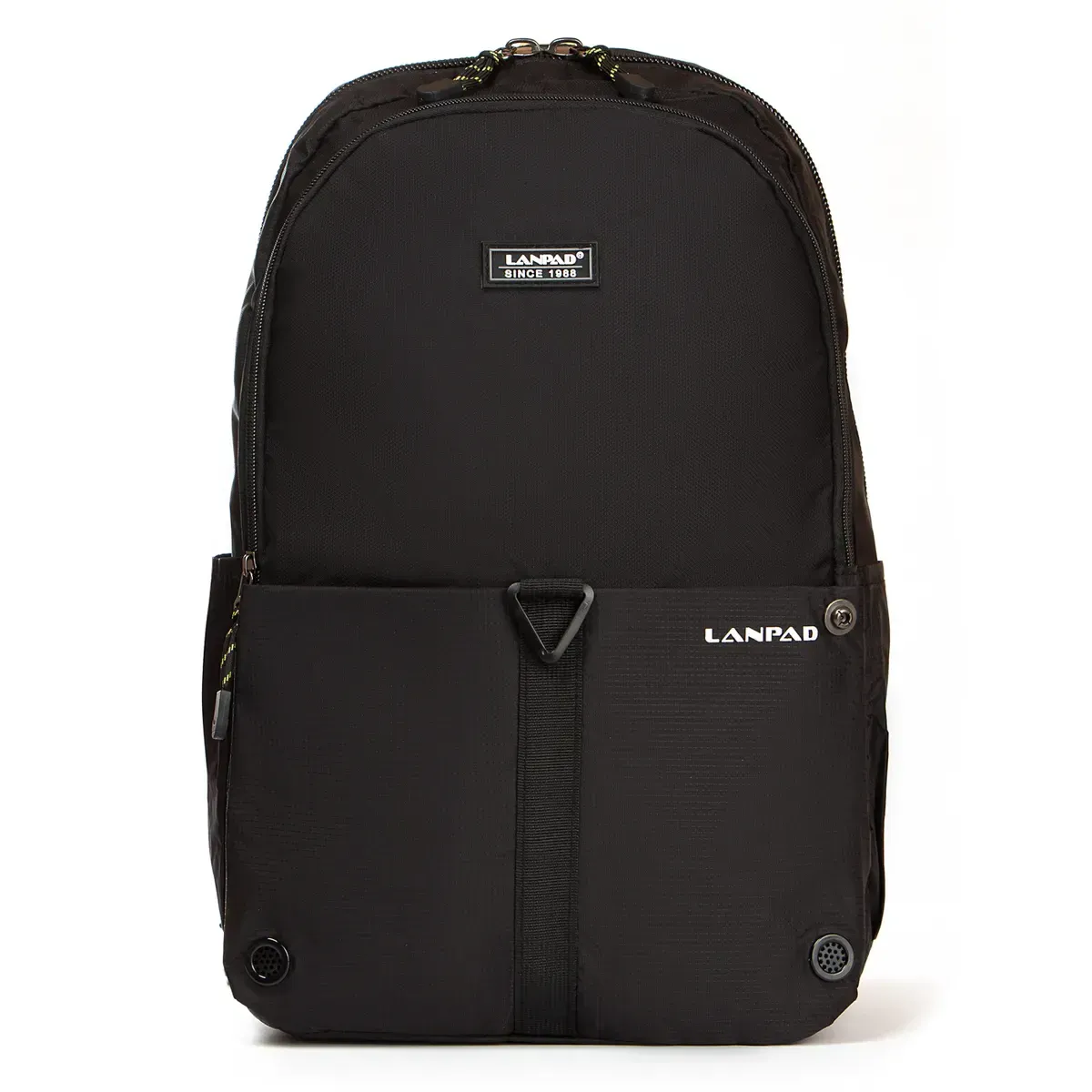 Рюкзак городской Lanpad. Два отделения, закрываются на молнии. Внутри основного есть боковой открытый карман для ноутбука и двойной открытый карман и карман на молнии. На фасаде находятся два карман на застежке-липучке, а на обратной стороне карман на молнии. На торцах рюкзака есть два открытых кармана.