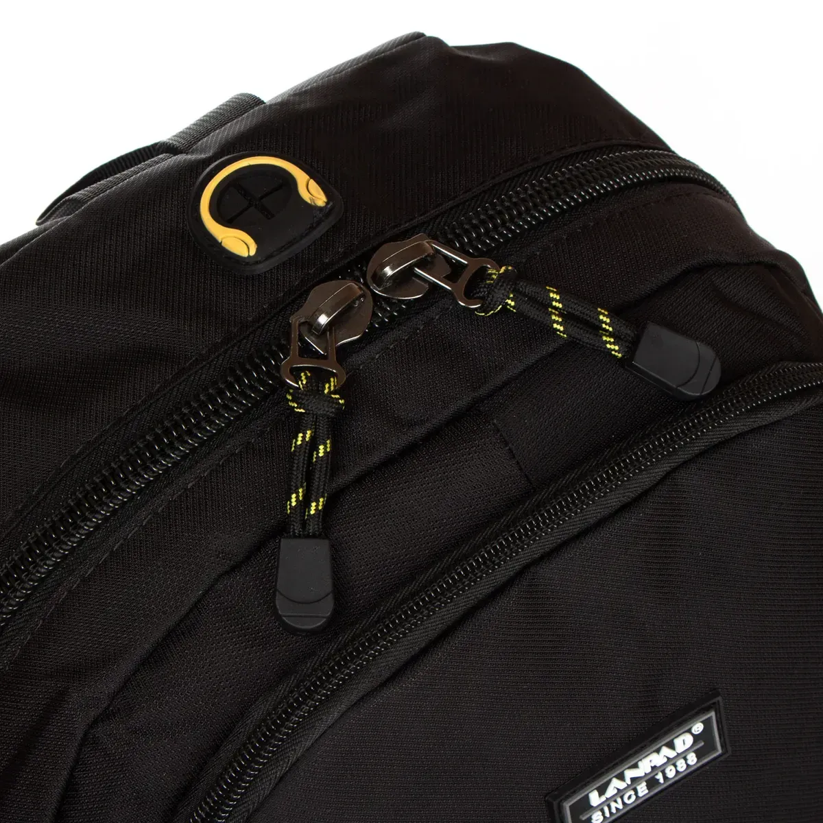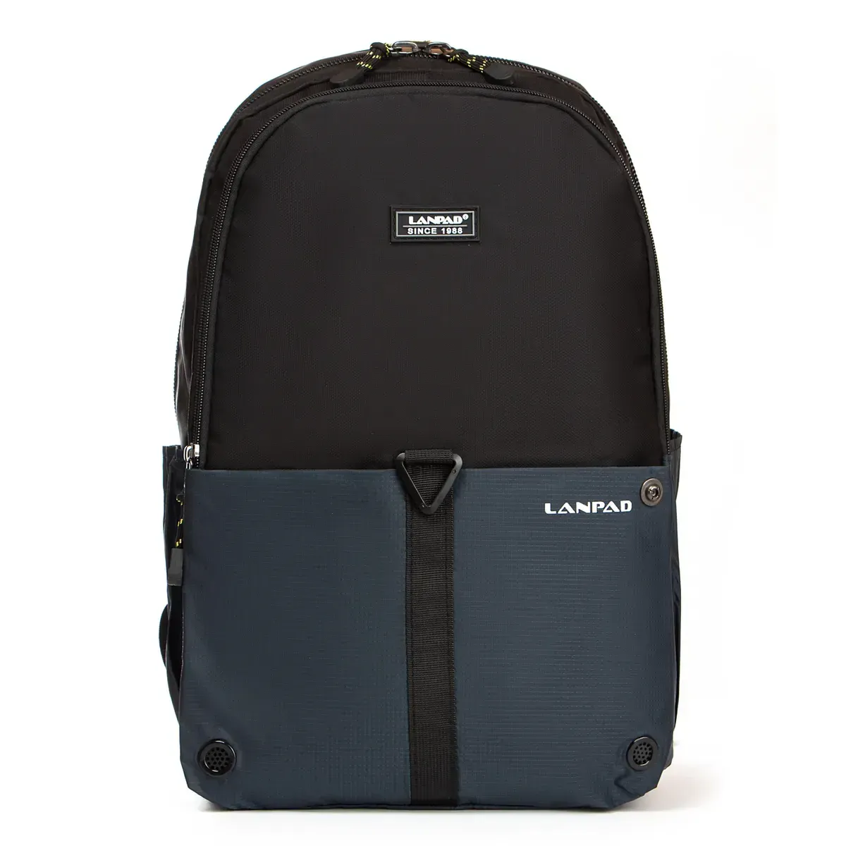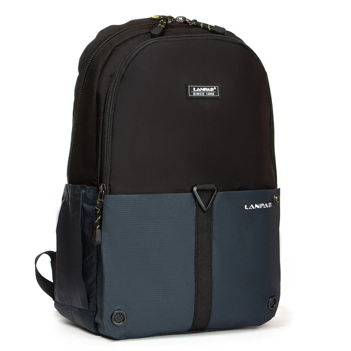 Рюкзак городской Lanpad. Два отделения, закрываются на молнии. Внутри основного есть боковой открытый карман для ноутбука и двойной открытый карман и карман на молнии. На фасаде находятся два карман на застежке-липучке, а на обратной стороне карман на молнии. На торцах рюкзака есть два открытых кармана.