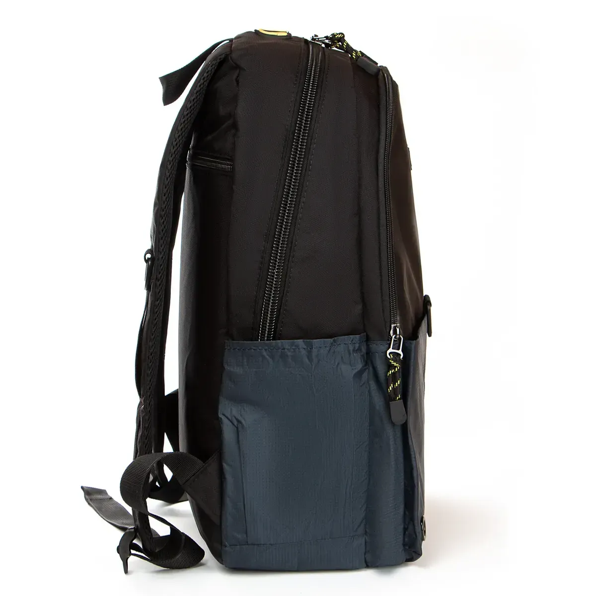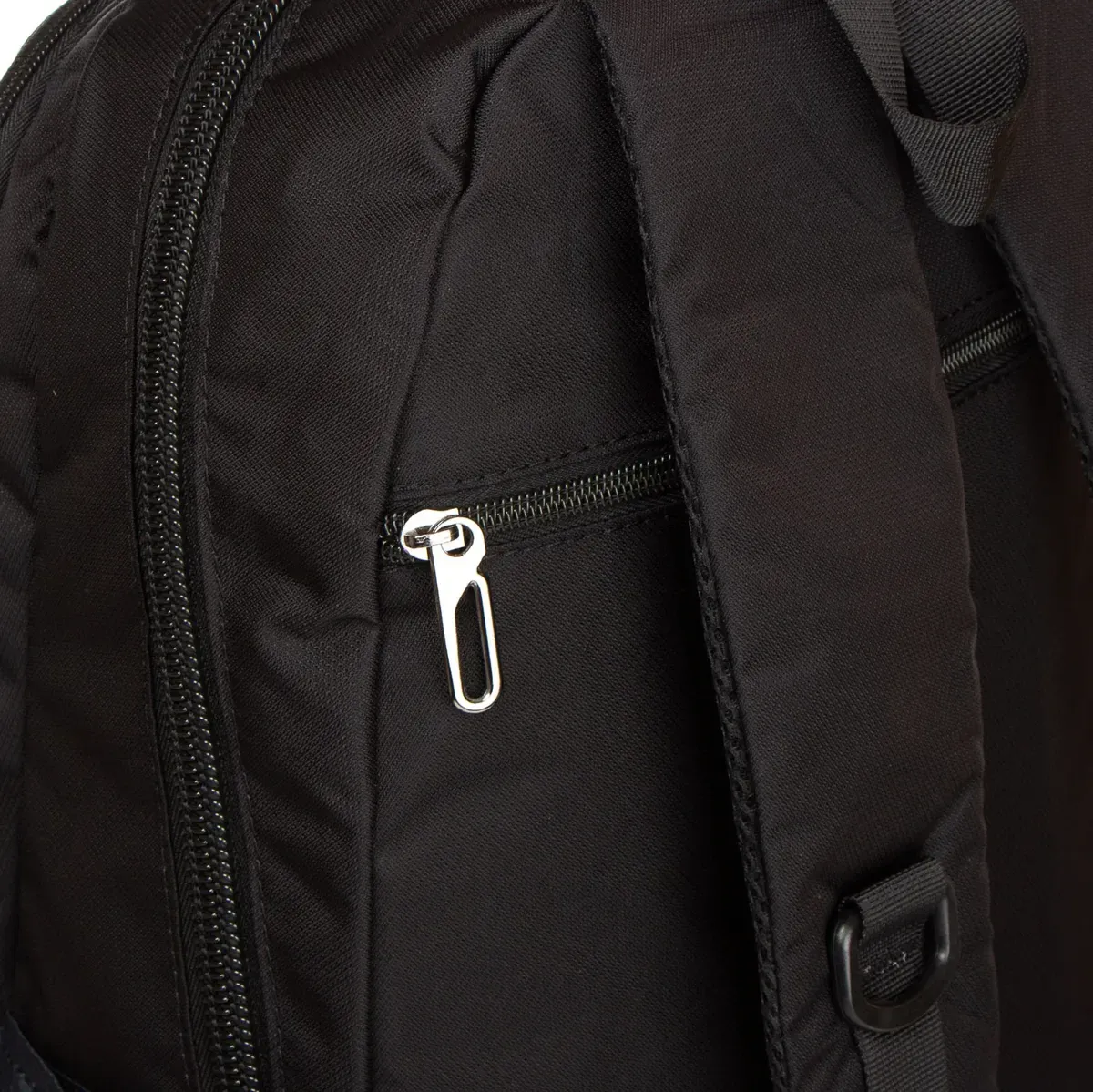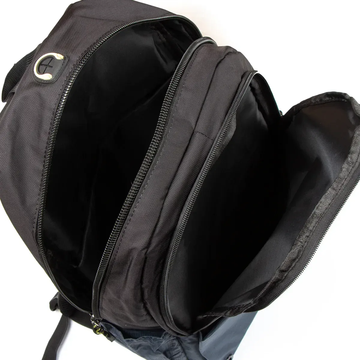 Рюкзак городской Lanpad. Два отделения, закрываются на молнии. Внутри основного есть боковой открытый карман для ноутбука и двойной открытый карман и карман на молнии. На фасаде находятся два карман на застежке-липучке, а на обратной стороне карман на молнии. На торцах рюкзака есть два открытых кармана.