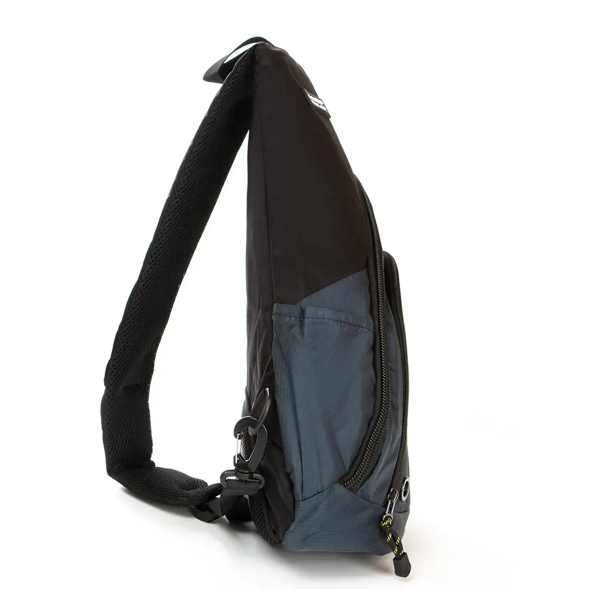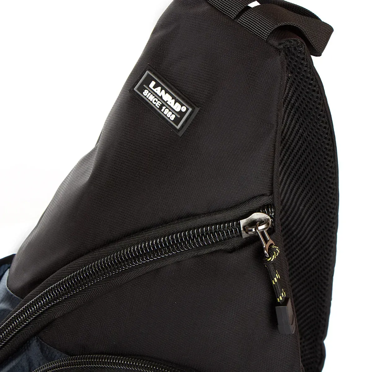 Рюкзак на одно плечо Lanpad. Одно отделение, закрывается на молнию. Внутри есть большой боковой карман на молнии. На фасаде находится всестительный карман на молнии, с внутренним карманом для смартфона. Снаружи рюкзака также есть карман на застежке-липучке и открытый карман.