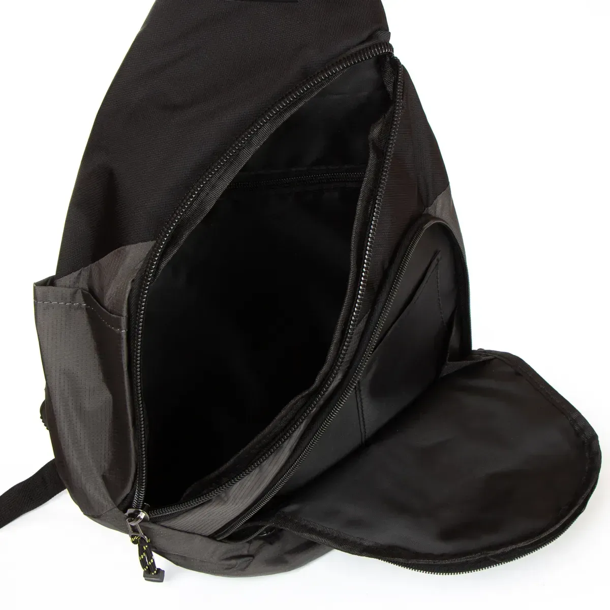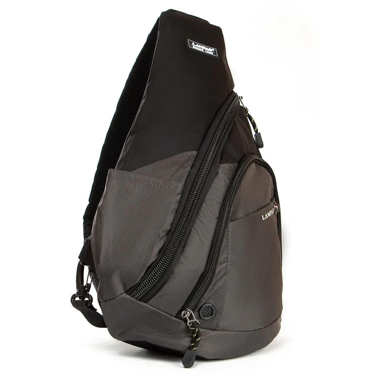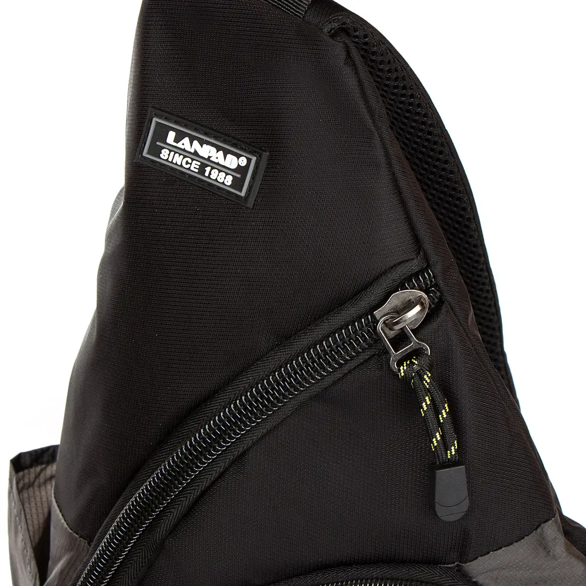 Рюкзак на одно плечо Lanpad. Одно отделение, закрывается на молнию. Внутри есть большой боковой карман на молнии. На фасаде находится всестительный карман на молнии, с внутренним карманом для смартфона. Снаружи рюкзака также есть карман на застежке-липучке и открытый карман.