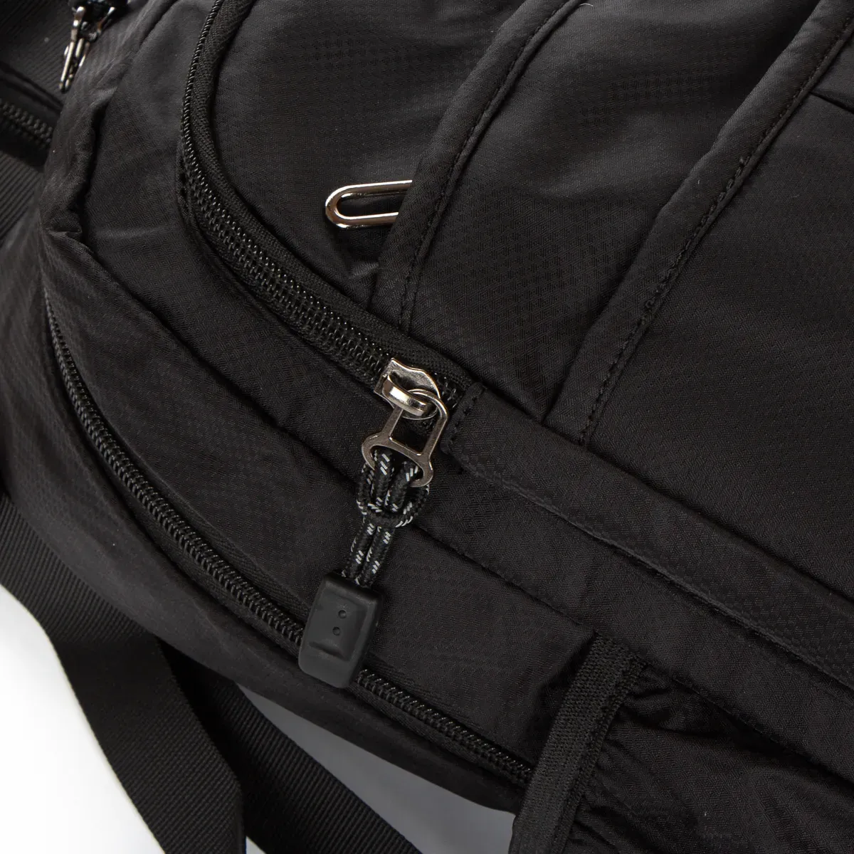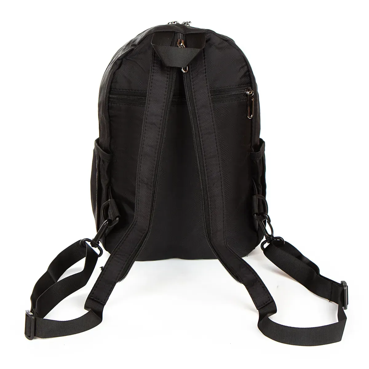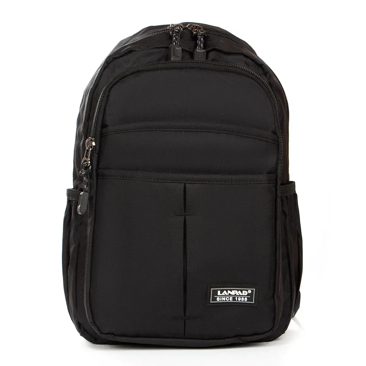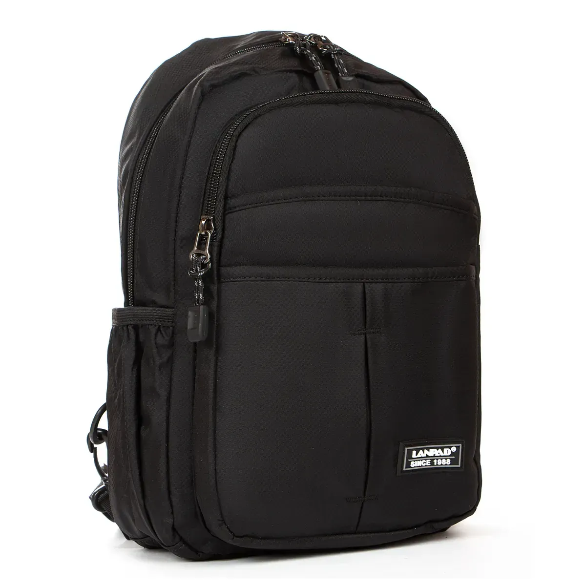Компактный городской рюкзак Lanpad. Одно отделение, закрывается на молнию. Внутри есть боковой открытый карман и карман на молнии. На фасаде есть карман на молнии и карман на застежке-липучке. На обратной стороне находится карман на молнии. На боковых стенках есть два открытых кармана.