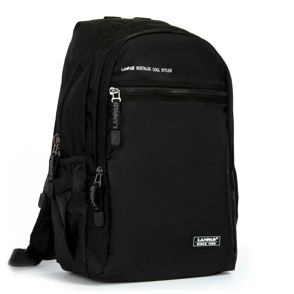 Компактный городской рюкзак Lanpad. Два отделения, закрываются на молнию. Внутри есть боковой карман на молнии и карман для нетбука 14". На фасаде и обратной стороне находятся два кармана на молнии, и на боковых стенках также есть два открытых кармана. Плечевые лямки регулируется по длине.