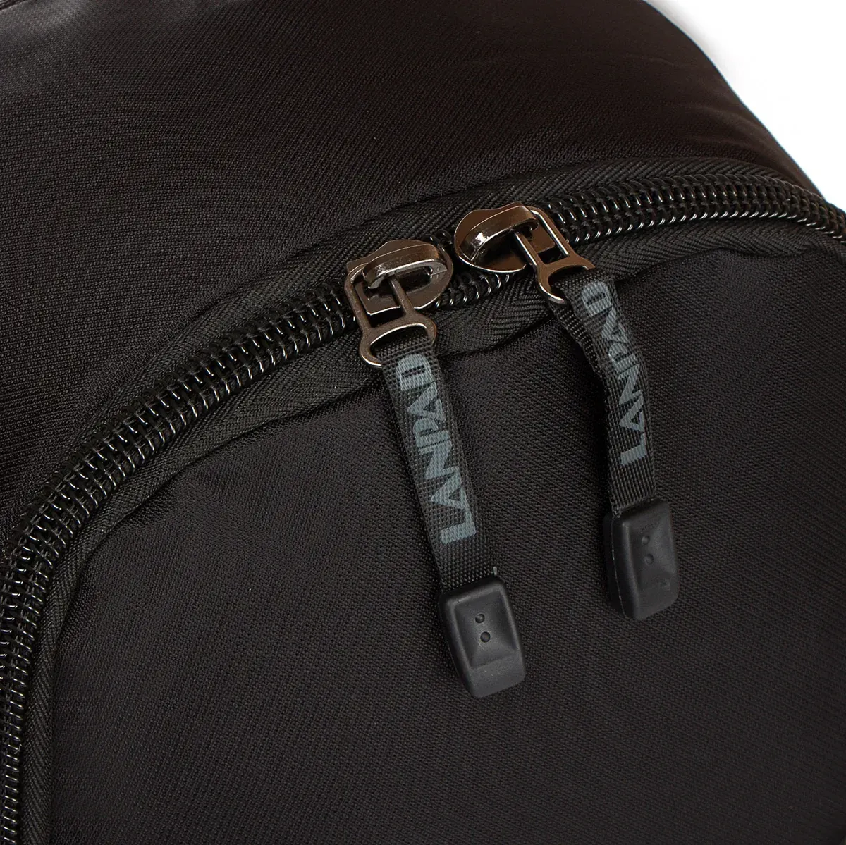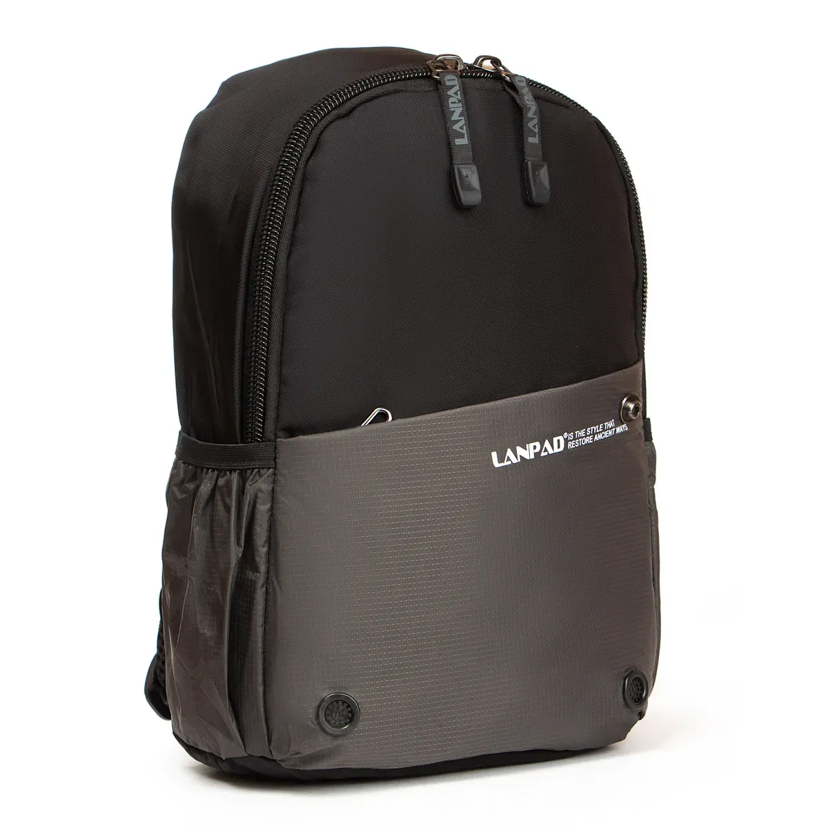 Компактный городской рюкзак Lanpad. Одно отделение, закрывается на молнию. Внутри есть боковой открытый карман для ноутбука до 14", карман на молнии и двойной открытый карман. На фасаде и обратной стороне находятся карманы на молнии. На боковых стенках есть два открытых кармана.