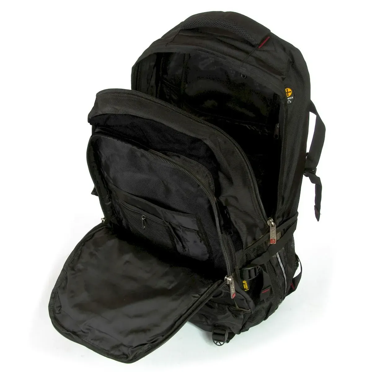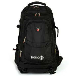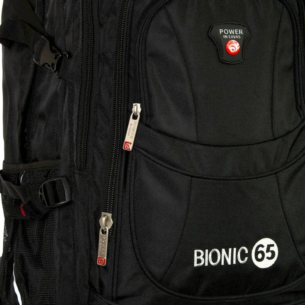 Большой городской рюкзак с плотной спинкой "Power in Eavas". Три отделения, закрываются на молнию. Внутри основного отделения есть карман для ноутбука 17,3". боковой карман на молнии и небольшие открытые карманы. Среднее отделение с карманом-органайзером. На фасаде расроложен один карман на молнии. На боковых сторонах рюкзака находятся карманы-сетки для бутылок воды объемом 1 л. Плечевые лямки регулируются по длине и оснащены грудным и поясным ремнем. Объем 65 литров.