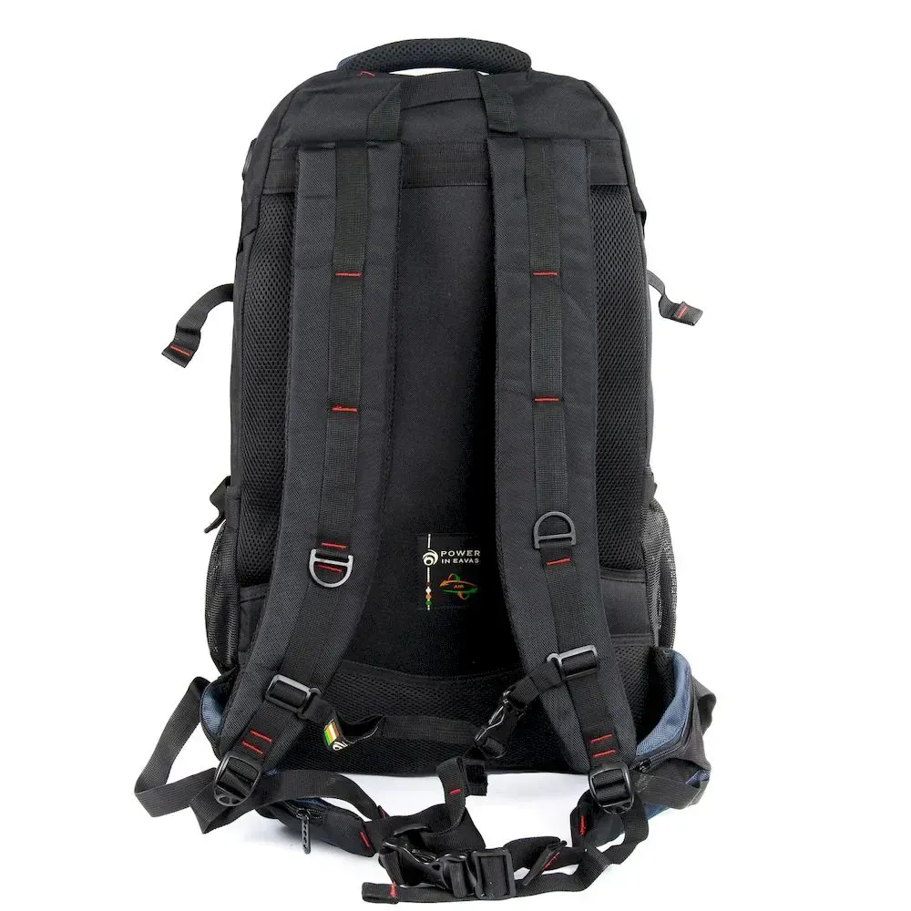 Большой городской рюкзак с плотной спинкой "Power in Eavas". Три отделения, закрываются на молнию. Внутри основного отделения есть карман для ноутбука 17,3". боковой карман на молнии и небольшие открытые карманы. Среднее отделение с карманом-органайзером. На фасаде расроложен один карман на молнии. На боковых сторонах рюкзака находятся карманы-сетки для бутылок воды объемом 1 л. Плечевые лямки регулируются по длине и оснащены грудным и поясным ремнем. Объем 65 литров.