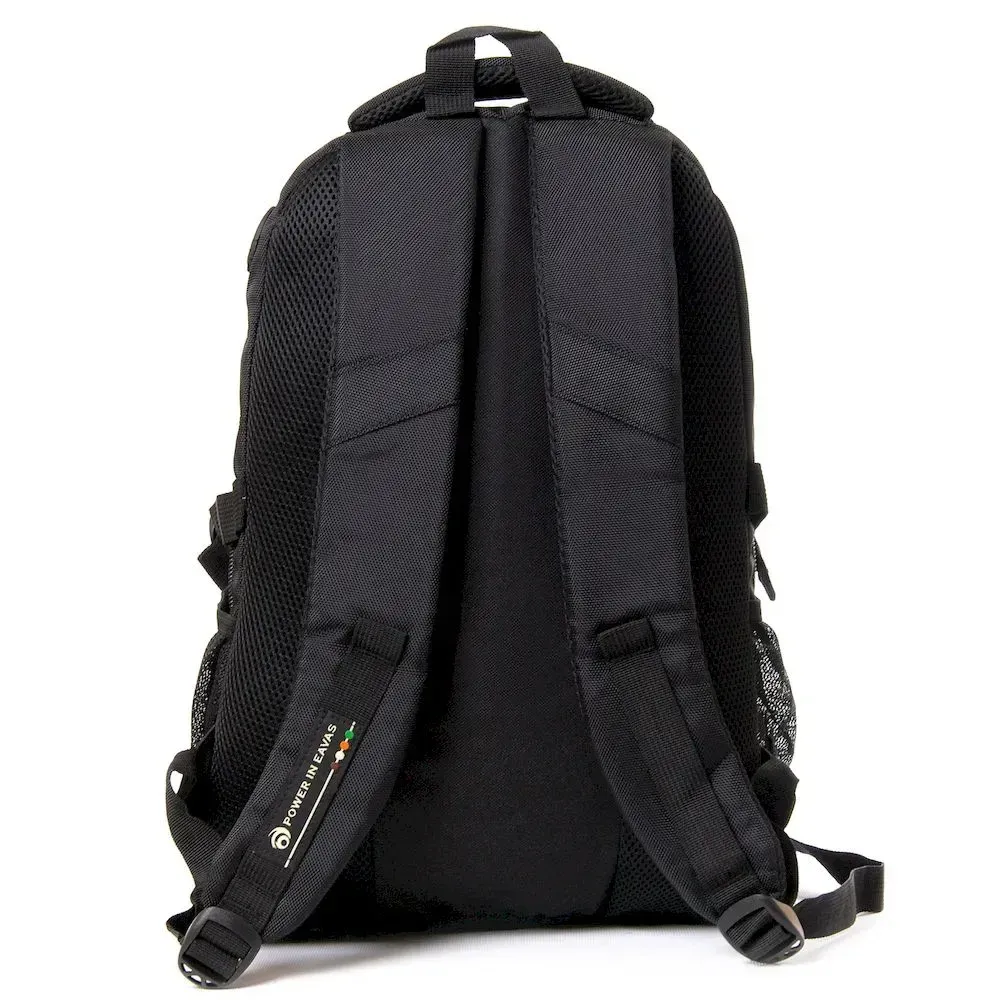 Городской рюкзак "Power in Eavas". Внутри рюкзака два отделения на молнии. В одном отделении органайзер, а в другом отделении карман для ноутбука и карман для телефона. На фасаде большой карман на молнии. На боковых сторонах рюкзака карманы-сетки для бутылок воды объемом 0,5 литров. Плечевые лямки регулируются по длине.